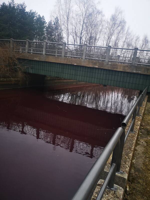 Ketvirtadienio ryte gavę pranešimą apie pakitusią upės spalvą, aplinkosaugininkai kelias valandas vaikštinėjo krantais, ieškodami taršos šaltinio.