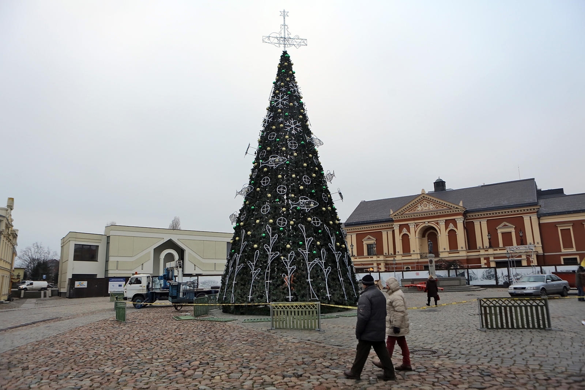 Teatro aikštėje baigiama puošti šventinė miesto eglė. Joje atsispindės povandeninis pasaulis. Ant eglės pakabintos šviečiančios dekoracijos: žuvys, žolės, burbulai – ir žalios bei auksinės spalvos žaisliukai.