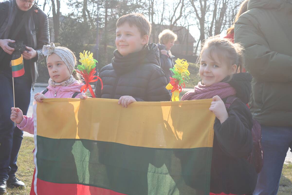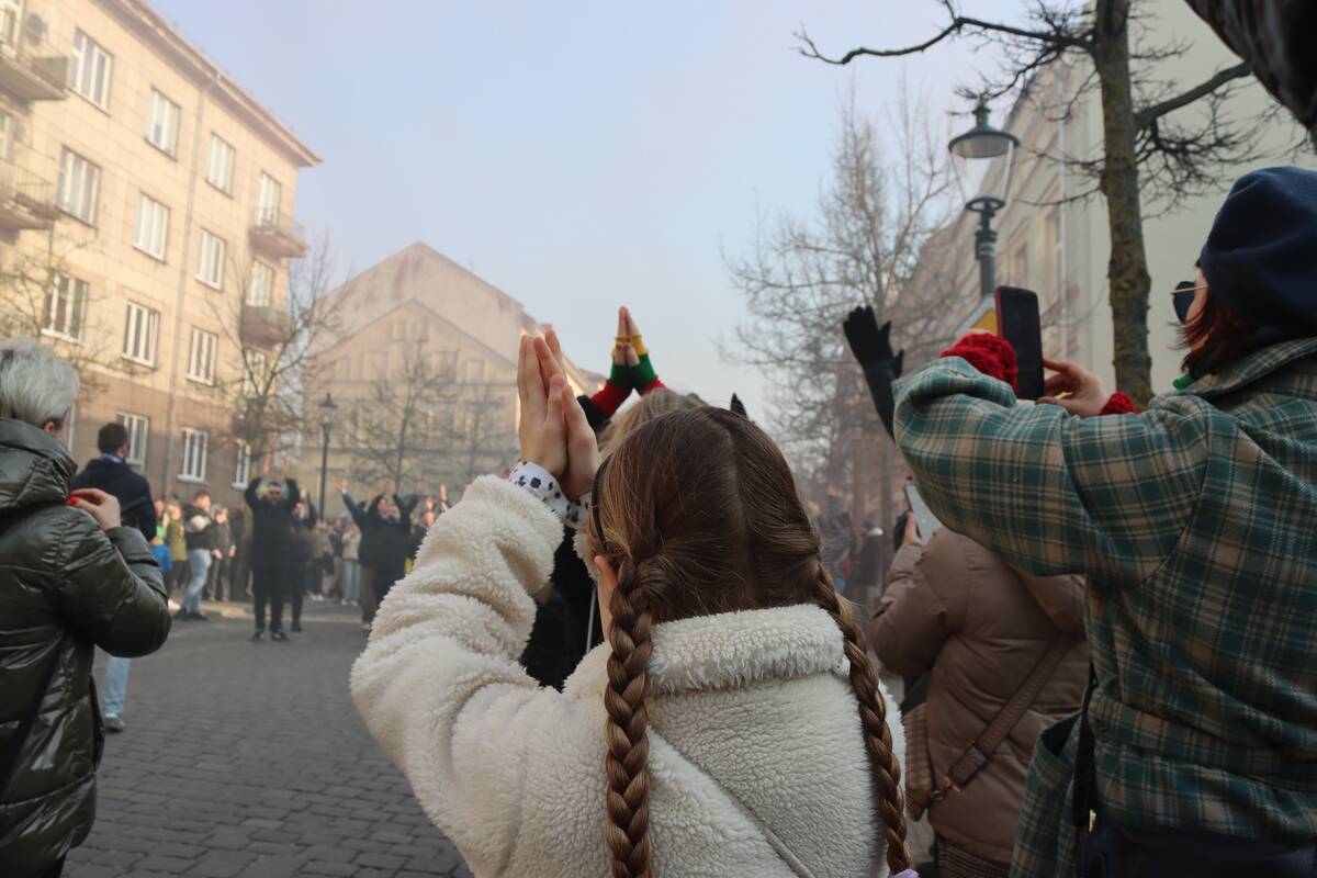 Eiseną vedė krepšinio komandos „Neptūnas“ sirgalių grupė „Vakarų banga“. Prie jų prisijungė ir aibė įvairaus amžiaus klaipėdiečių, kurie nestokojo geros nuotaikos. Jiems žygiuojant aidėjo įvairūs šūkiai, tarp jų – ir už Lietuvą.