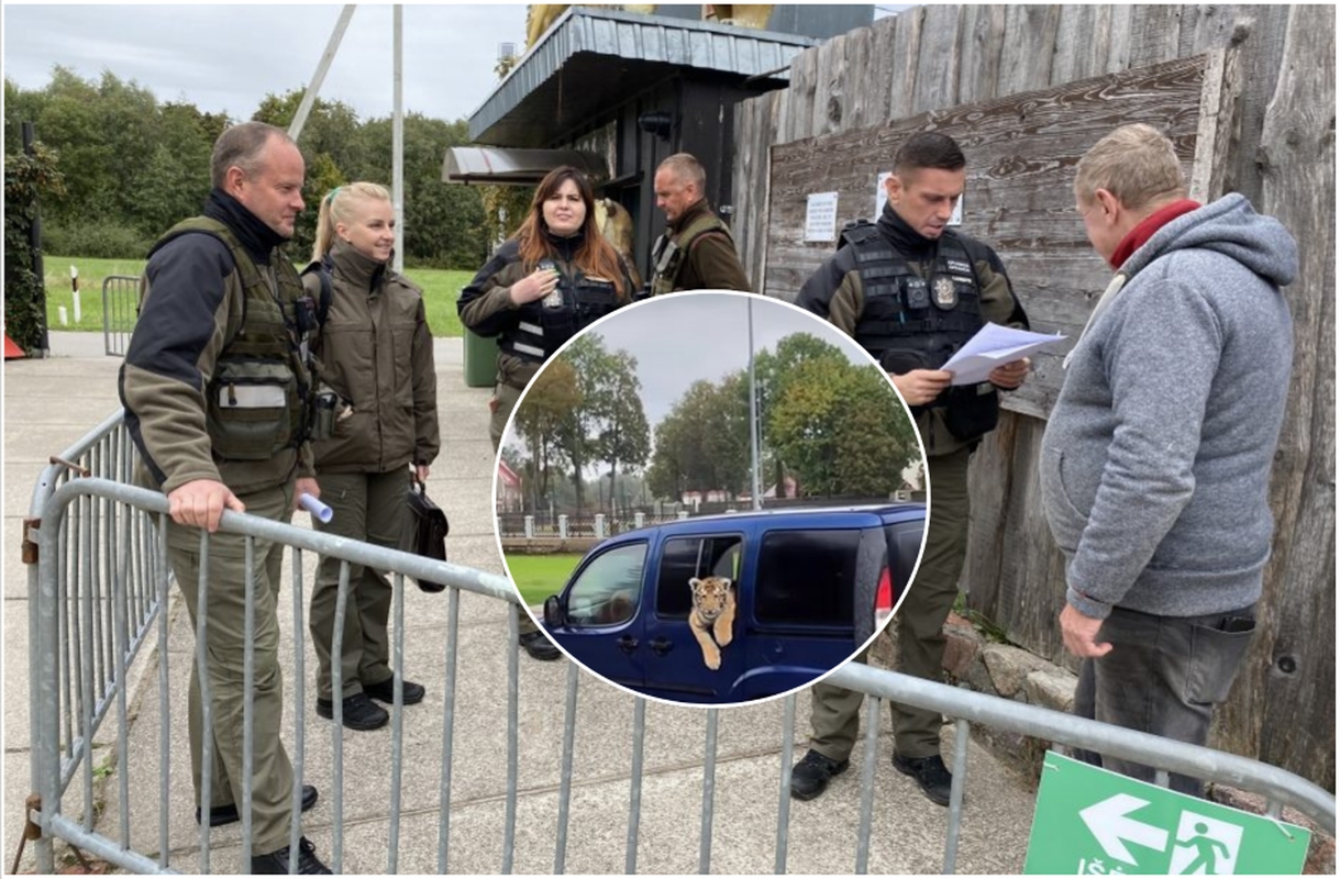 Penki aplinkosaugininkai rūsčiais veidais pareiškė atvykę dėl skundo, klausinėjo įstaigos vadovo, kodėl šis vežioja automobiliu tigriukus, kodėl juos demonstruoja kitiems.