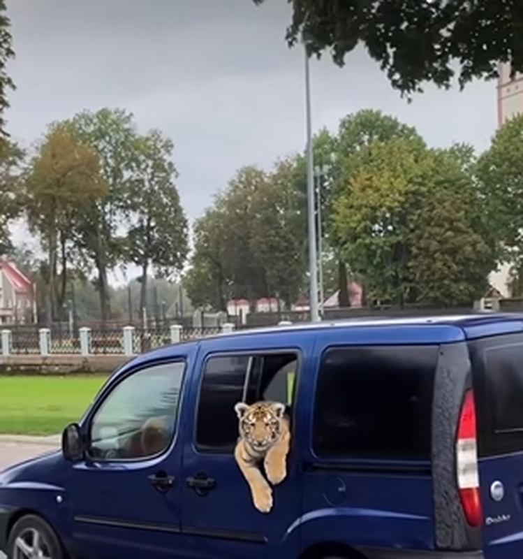 Vedėjas pasakojo, kad jį labai nustebino po šventės Kretingoje išvydus pro automobilio langą galvą iškišusį tigriuką.