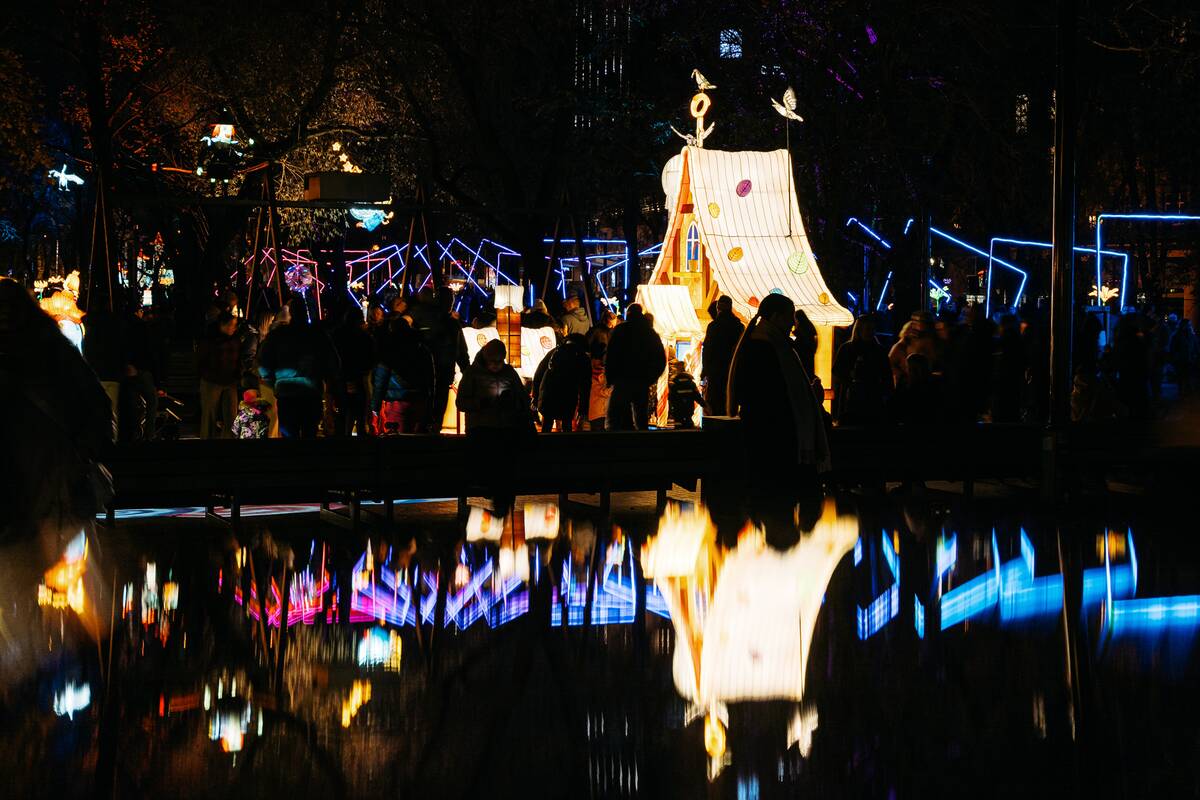 Po kelių gerai žinomų dainelių, paspaudus stebuklingą mygtuką, buvo įžiebtas šviesų parkas.