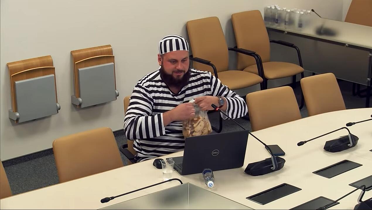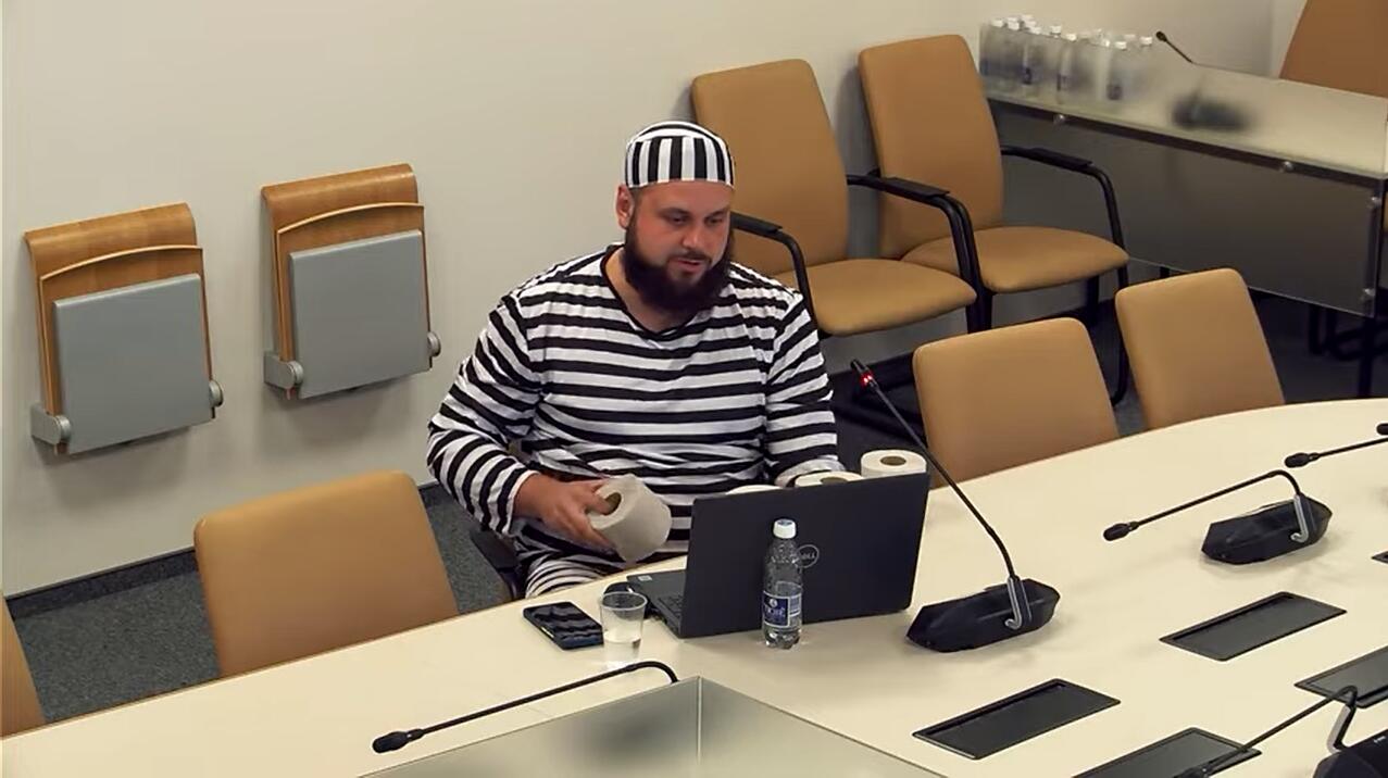 Ketvirtadienį vykusiame posėdyje, vos pasirodžius komisijos svarstomam G. Petreikiui, du tarybos nariai atsisakė dalyvauti dėl provokuojamos politiko aprangos – vyras atėjo dryžuotais rūbais, primenančiais kalinio uniformą.
