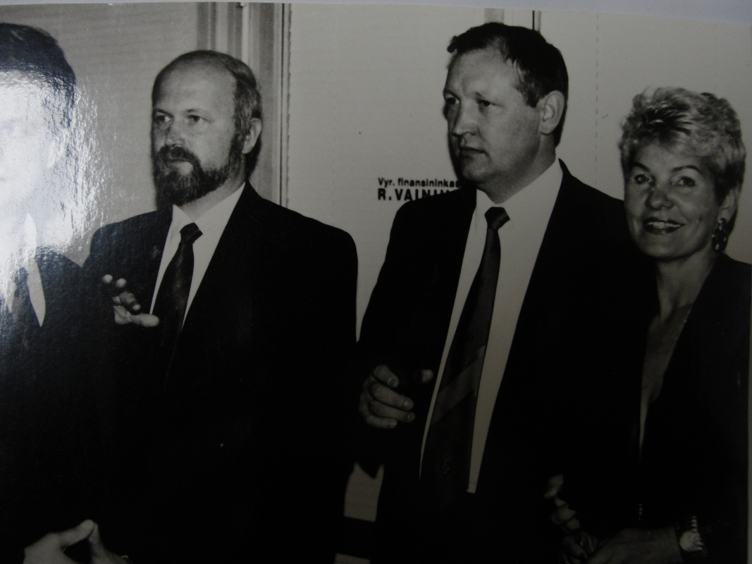 Bankininkai: vienas banko vadovų V. Būtėnas, E. Valeškevičius ir I. Valeškevičienė. I. Valeškevičienės asmeninio archyvo nuotr.