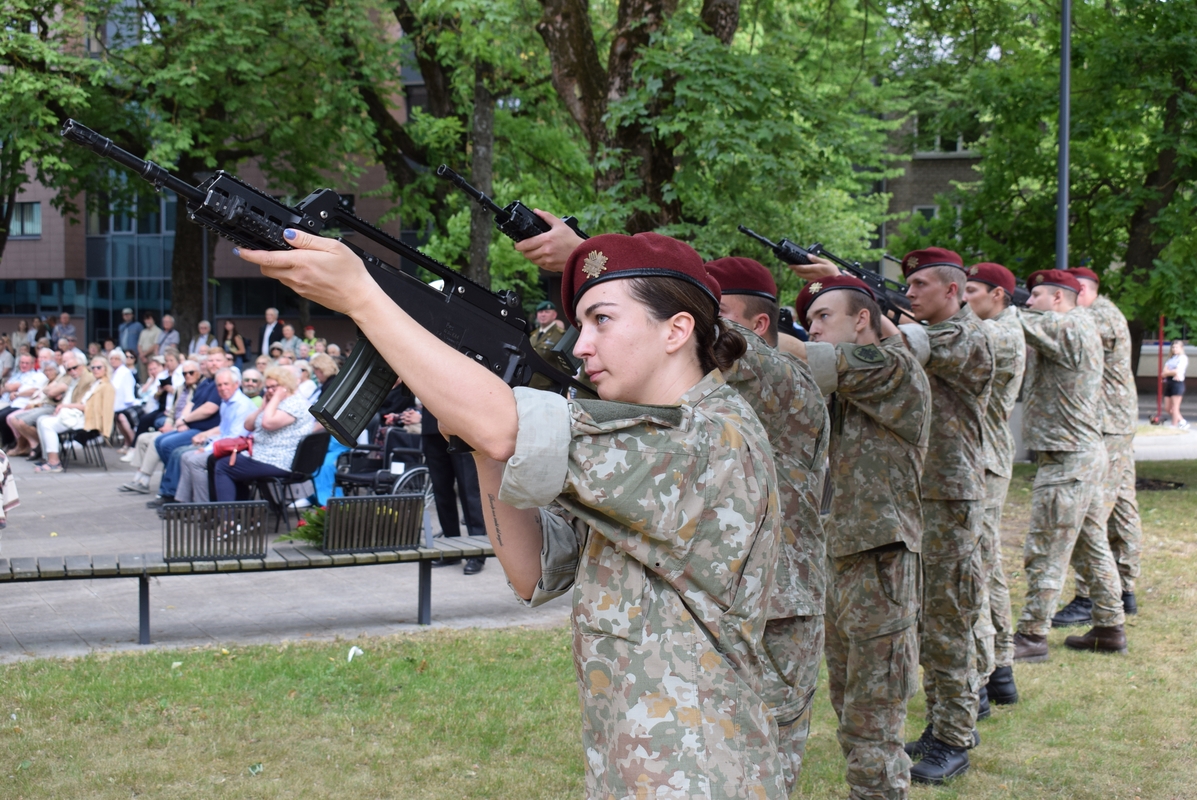 Žilagalviai žmonės sėdėjo po vis labiau besistiebiančių medžių laja, gaivinami jų šešėlio. Skvere rikiavosi kariai, jie budėjo ir prie paminklų. Lietuvos kariuomenės Karinių jūrų pajėgų pučiamųjų orkestras, vadovaujamas Egidijaus Mikniaus, ir šįkart papuošė renginį ne tik grojimu, bet ir vaizdu.