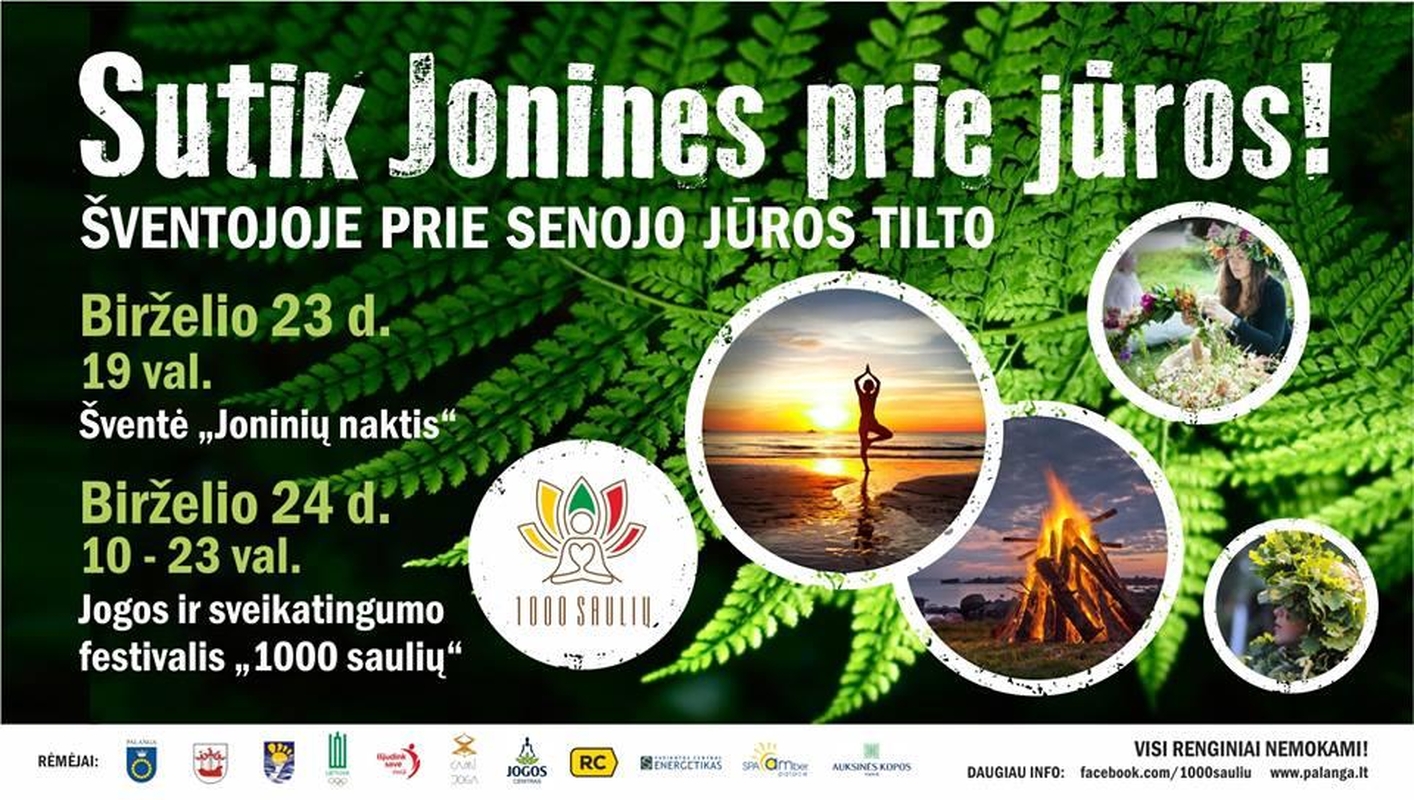 Birželio 24 d. nuo 10 val. pirmą kartą įvyks Lietuvos Olimpinio komiteto programos „Išjudink save“ remiamas festivalis „1000 saulių“. Ryte visų laukiame SC „Energetikas“ mankštoje prie jūros, o 12 val. vasaros saulėgrįžos proga kviečiame siekti rekordo atliekant jogos saulės pasveikinimus. Pratimus galėsite išmokti festivalio metu, 11 val., arba išvysti internetiniame puslapyje – facebook.com/1000sauliu.