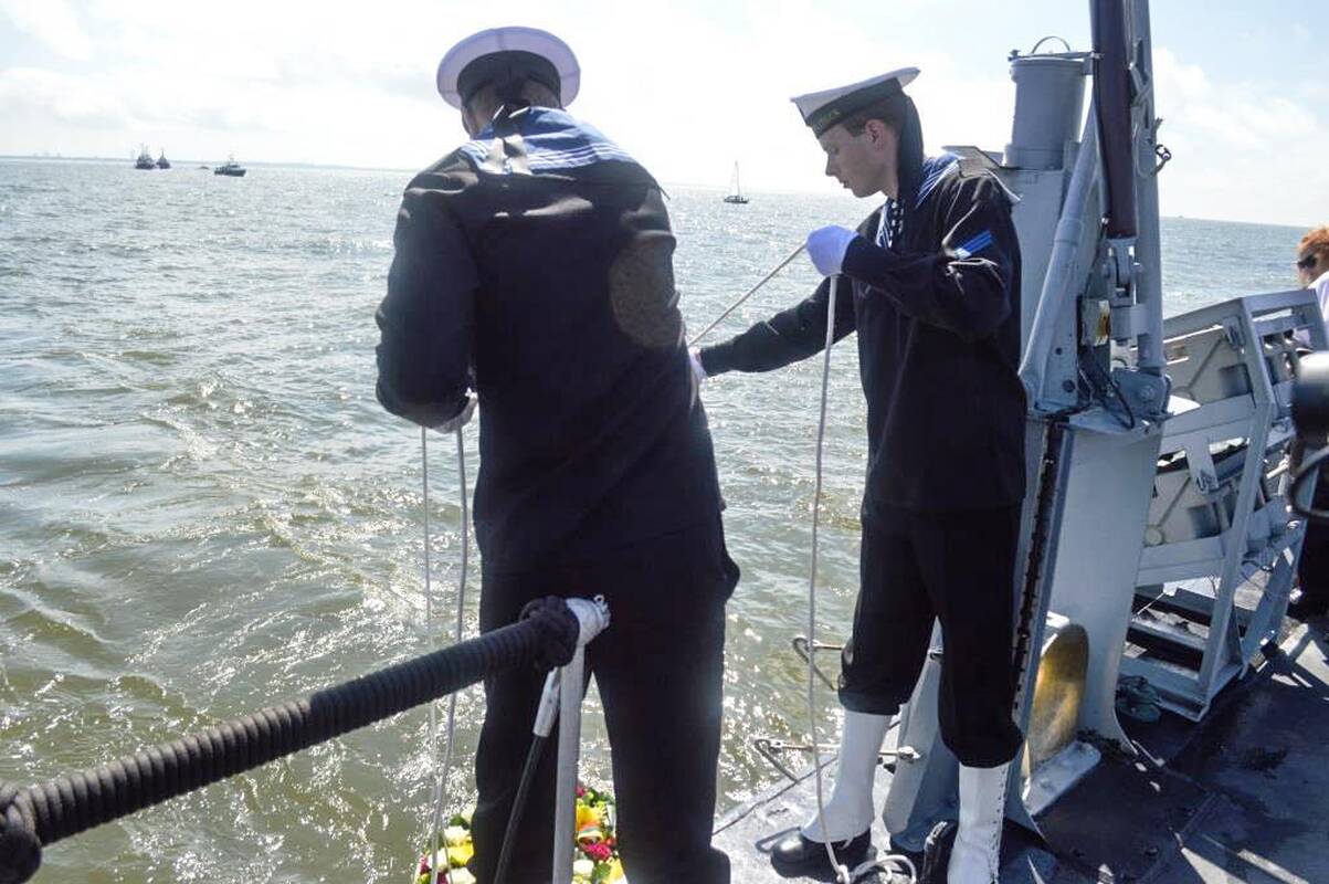 Iš karinio laivo ,,Kuršis“ į Baltijos jūrą nuleisti Lietuvos Respublikos Prezidentūros, Karinių jūrų, Karinių oro bei Sausumos pajėgų, Klaipėdos, Telšių, Utenos, Biržų miestų, kitų atstovų vainikai. Baltijos jūra sužydėjo gėlėmis.