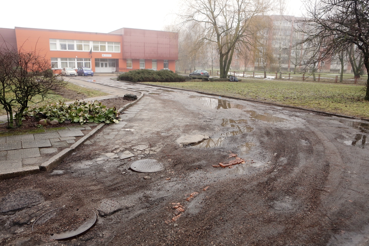 Klaipėdietė Jurgita pasakojo, kad sunkiau judantys mokiniai dažnai kliūva už nelygios kiemo dangos ir pargriūva.