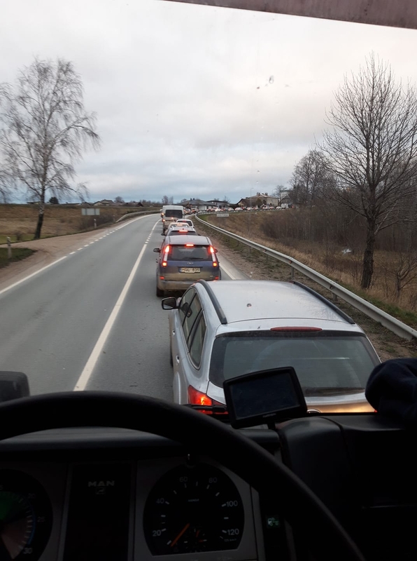 Socialiniame tinkle „Facebook“ vairuotojai dalijosi nuotraukomis, kuriose užfiksuotos prie patikros postų nusidriekusios eilės automobilių.