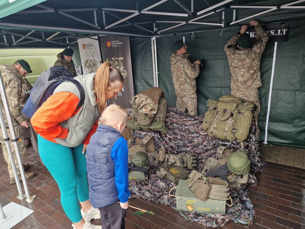 Aikštelėje, priešais areną, išsirikiavo karinė technika, kariai noriai bendravo su juos kalbinusiais civiliais. Vaikai smalsavo klausinėdami ne tik apie ginklus, bet ir bandė įlipti į karinius automobilius. Žiūrėjo per taikiklių optiką, bandydami suprasti, kaip sanitarinėje mašinoje jaučiasi sužeistieji.