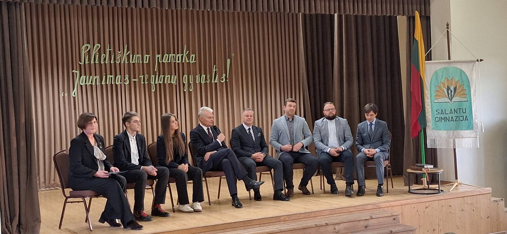Tuo metu pirmoji ponia Diana Nausėdienė lankėsi Darbėnų gimnazijoje ir dalyvavo diskusijoje apie mokinių sveikatinimą, o prezidento komandos nariai susitiko su Kretingos ligoninės ir Kretingos pirminės sveikatos priežiūros centro, socialinių įstaigų vadovais.