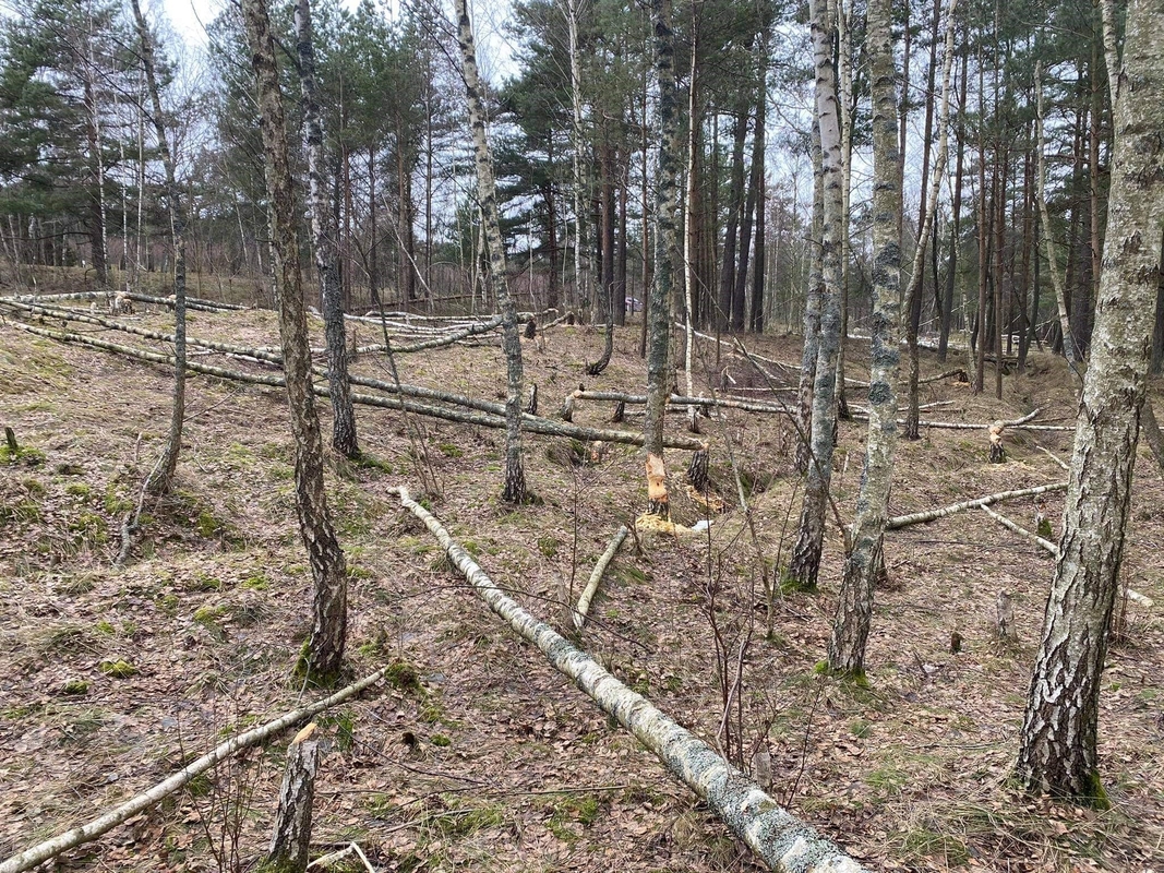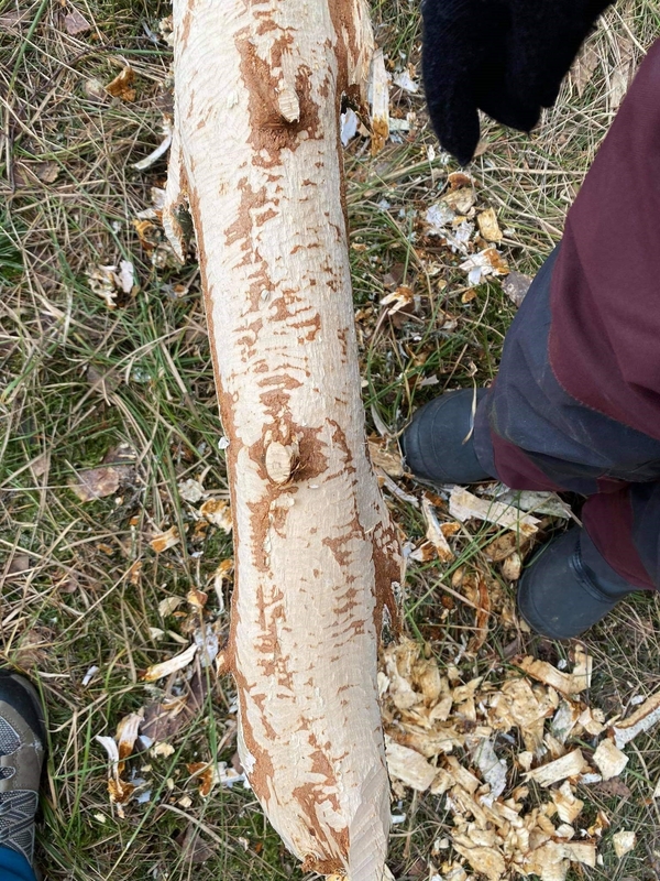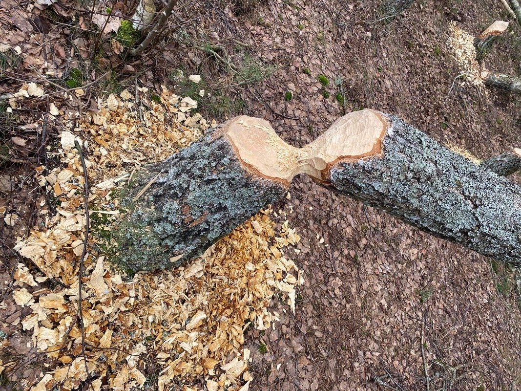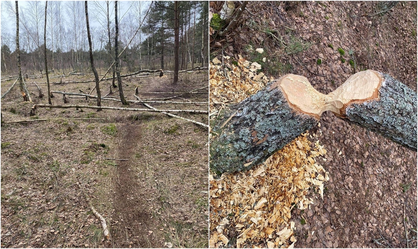 Kad tai – gyvūnų darbas, išduoda kamienuose paliktos dantų žymės. Medžiai nugraužti tvarkingai paliekant pieštuko formos kelmus.