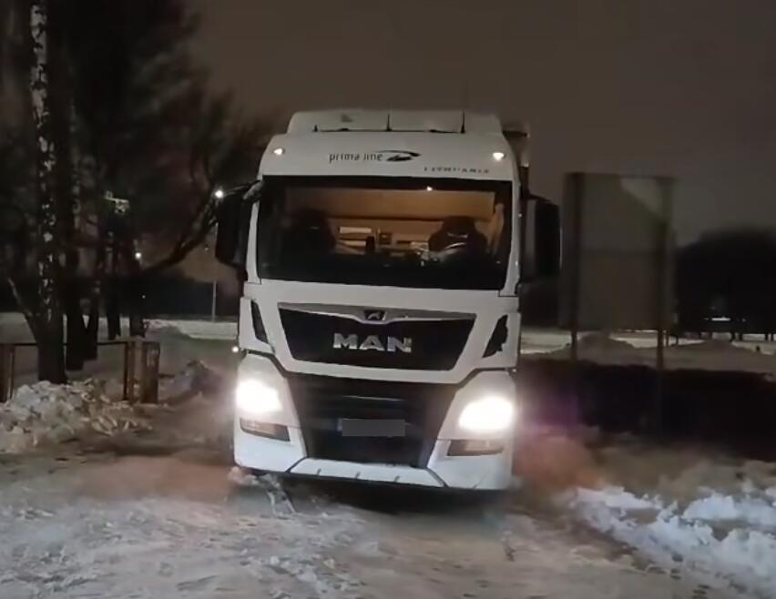 Nu ką, linksminamės. Čia gražiai yra įkritusi fūra ant mūsų išvažiavimo. Stovime jau daugiau nei valandą. Mašinų eilė didėja. Čia, eilutėje, yra penkios. Dar dvi – aikštelėje. Dar viena yra ten, už kampo. Irgi laukia. Kuo tai baigsis, niekas nežino“, – komentavo vaizdo įrašą dariusi moteris.