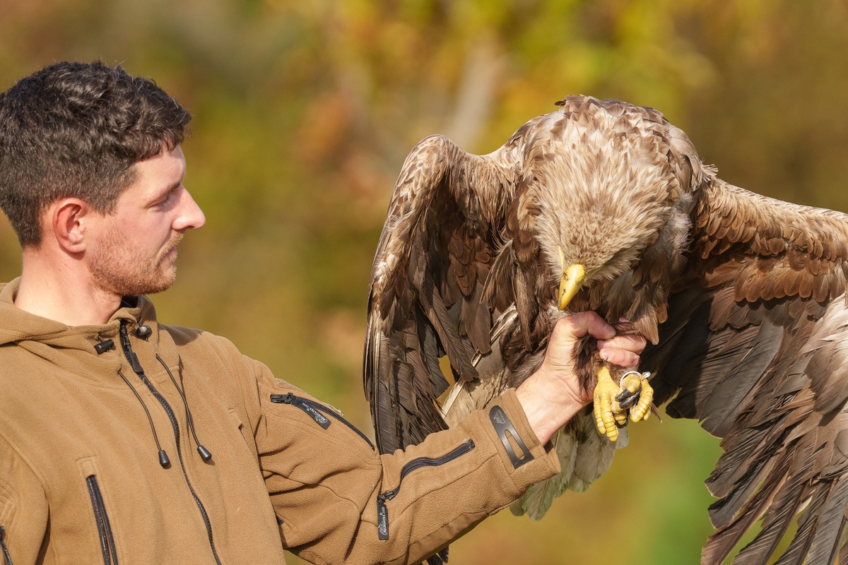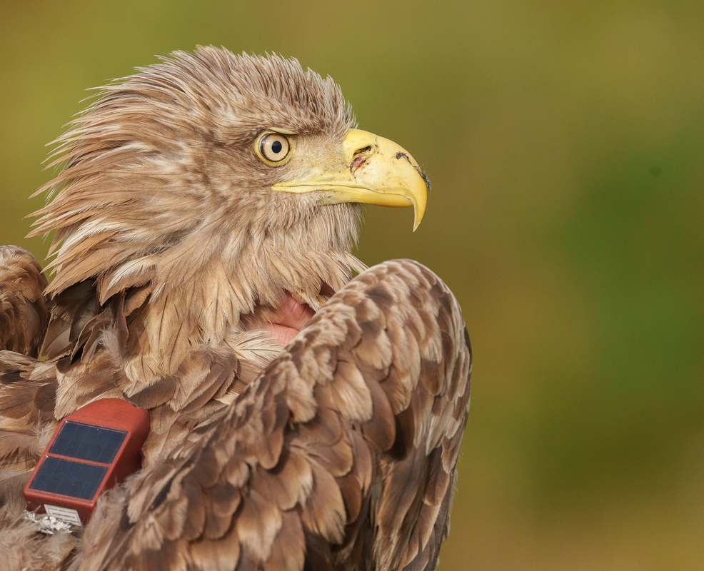 "Tai veikiausiai patinas, gal kokių ketverių metų. Kadangi į rankas retai pakliūva suaugę jūriniai ereliai, buvo nuspręsta šiam paukščiui, be standartinio metalinio žiedo, dar pritvirtinti GPS/GSM siųstuvą, kad būtų galima detaliai sekti tolesnes šio paukščio klajones. Po paleidimo Ventės rage erelis sėkmingai pakilo ir, nuskridęs į Rusnės salą, dar kurį laiką ten ilsėjosi. Vėliau paukštis patraukė į Karaliaučiaus pusę", – pasakojo ornitologas.