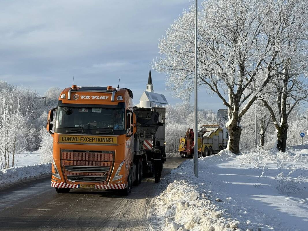 Manevrai: karinį šarvuotį iš uosto į Ruklą gabenęs vilkikas įstrigo pusnyse prie Gargždų.