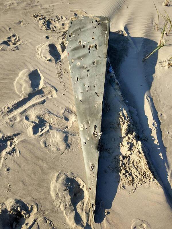 Paplūdimyje prie pat jūros mėtėsi milžiniškos detalės, panašios į lėktuvo nuolaužas.