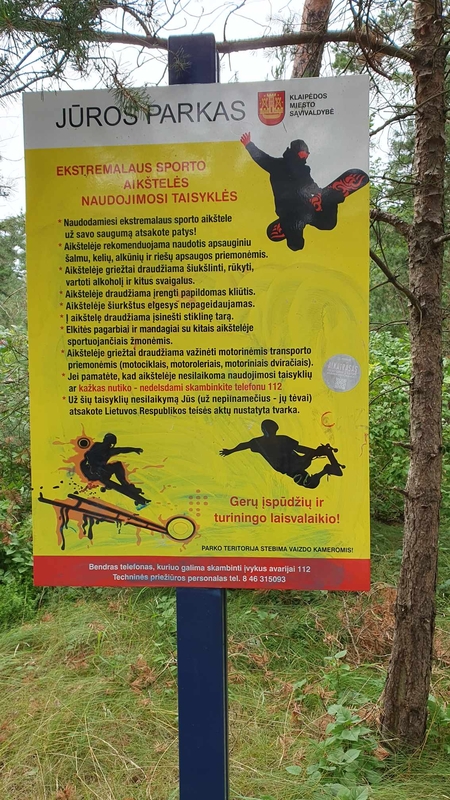 Paėjėjus tolėliau, prie riedučių aikštelės, stendas praneša, kad tai yra Jūros parkas. Šiame savivaldybės stende yra dar ir šiurkščių rašybos klaidų.