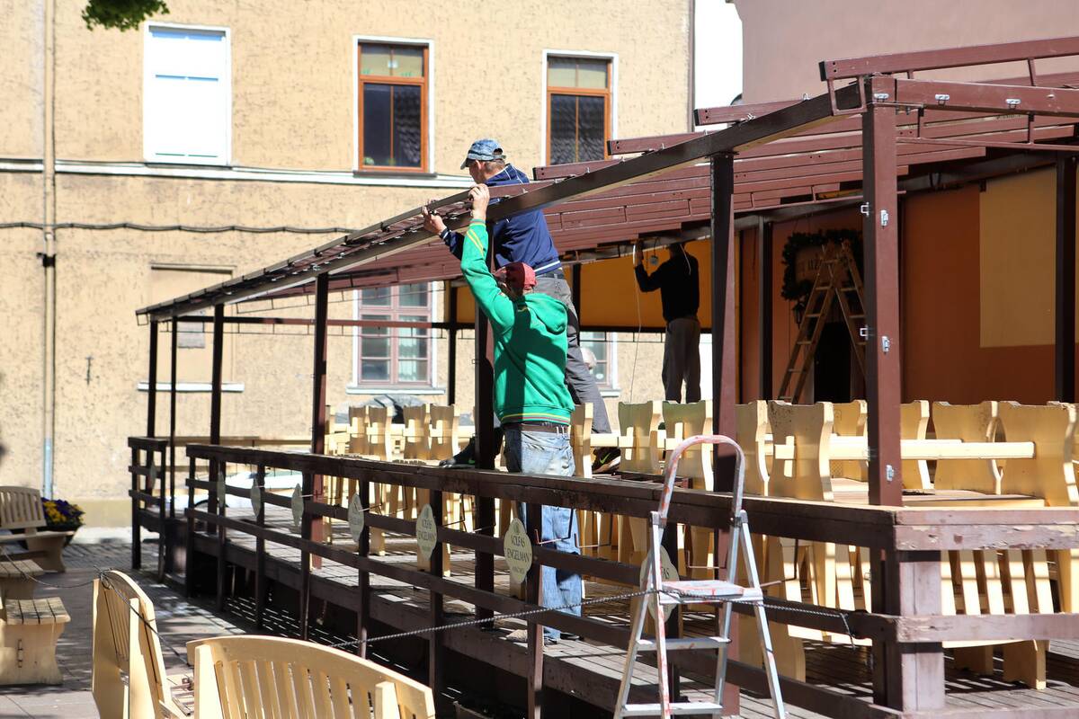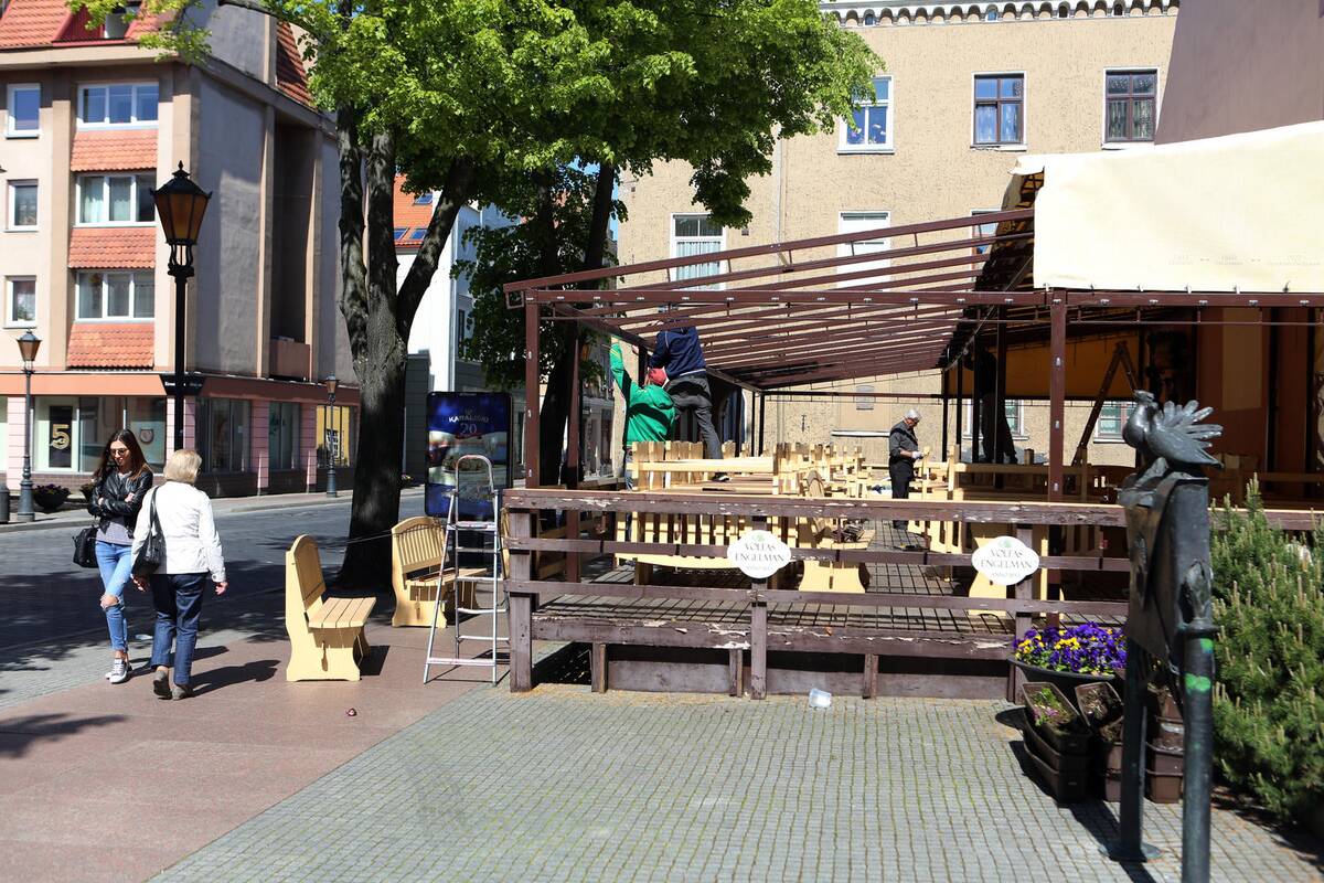 Dvoką ir grėsę praeiviams bei gėdą Klaipėdai prieš užsienio svečius užtraukusi benamių okupuota „Jonų užeigos“ lauko kavinė penktadienį baigta demontuoti. Valkatos iš pagrindinės senamiesčio gatvės išguiti.