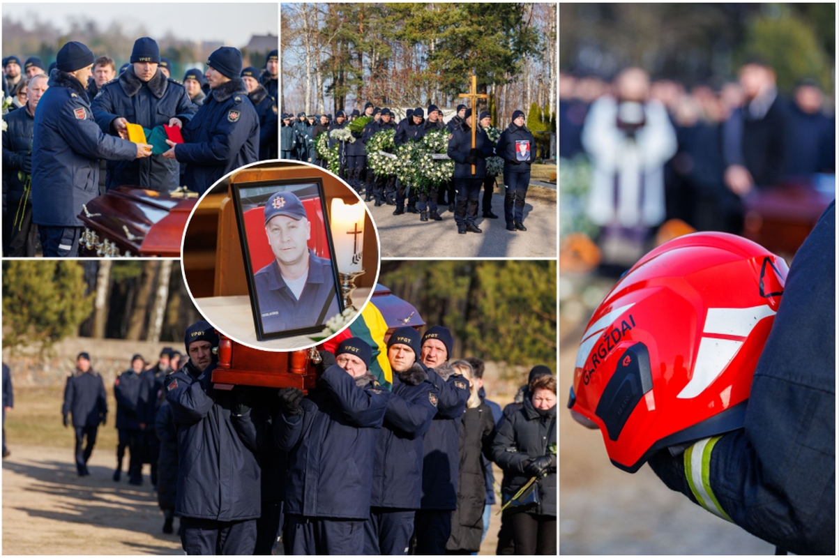 Atsisveikinti su žuvusiu ugniagesiu suvažiavo Priešgaisrinės apsaugos ir gelbėjimo departamento ir šalies priešgaisrinių gelbėjimo valdybų bei tarnybų pareigūnai.