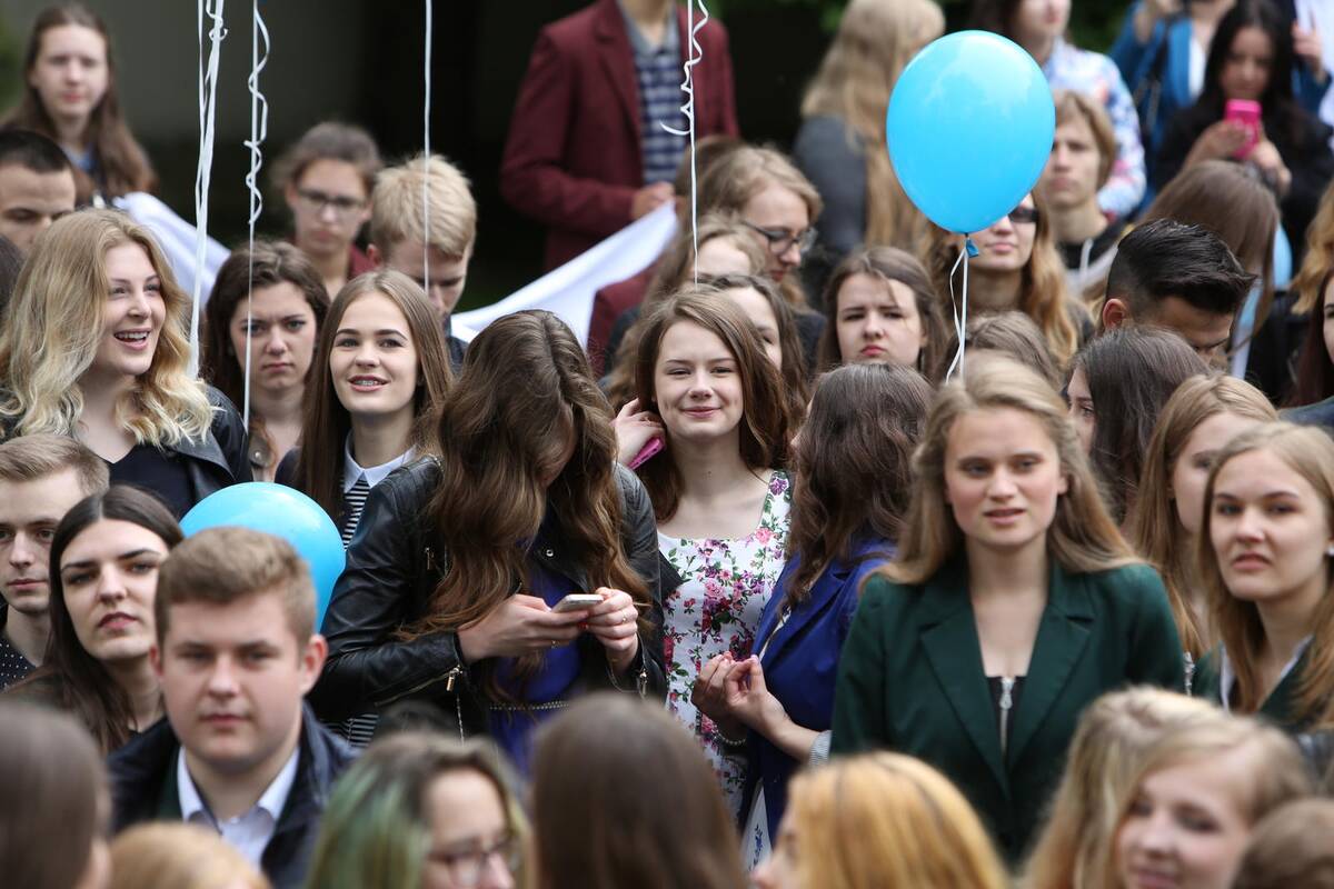 Spalvinga ir nuotaikinga jaunuolių kolona, prie kurios prisijungė ir profesinių mokyklų abiturientai, ketvirtadienį pajudėjo nuo Lietuvininkų aikštės. Puikiai nusiteikę moksleiviai vieningai žygiavo Herkaus Mano gatve, kol pasiekė Laikrodžių muziejaus kiemelį.