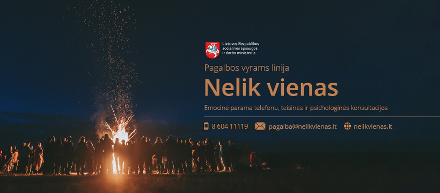 Lapkričio 19 dieną vyrų pagalbos linijos „Nelik vienas“ savanoriai užkurs bendrystės laužą. Tiesioginės transliacijos metu jie kalbės apie vyriškumą ir su kokiomis situacijomis susiduria šiuolaikiniai vyrai.