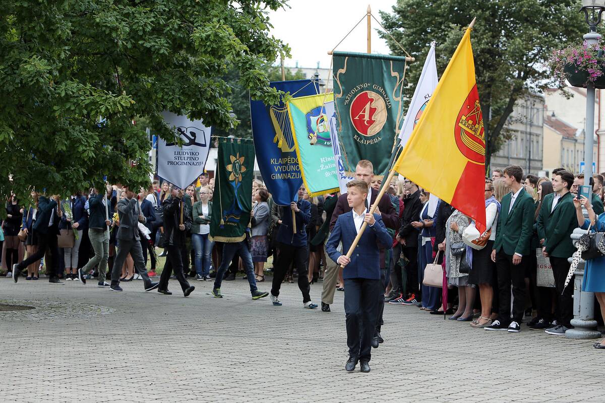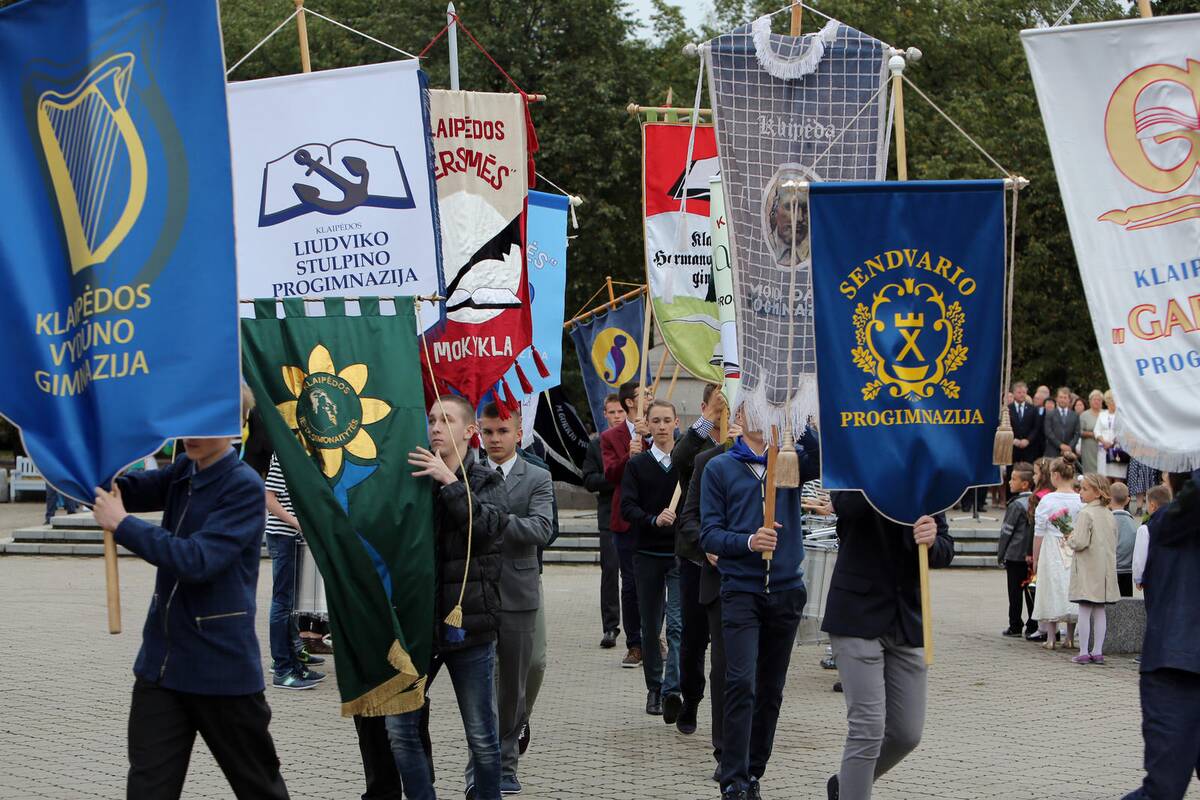 Tradiciškai uostamiesčio moksleivių rankose supleveno ir jų mokyklų vėliavos, aikštėje išsirikiavusią koloną lydėjo mušamųjų ritmai.