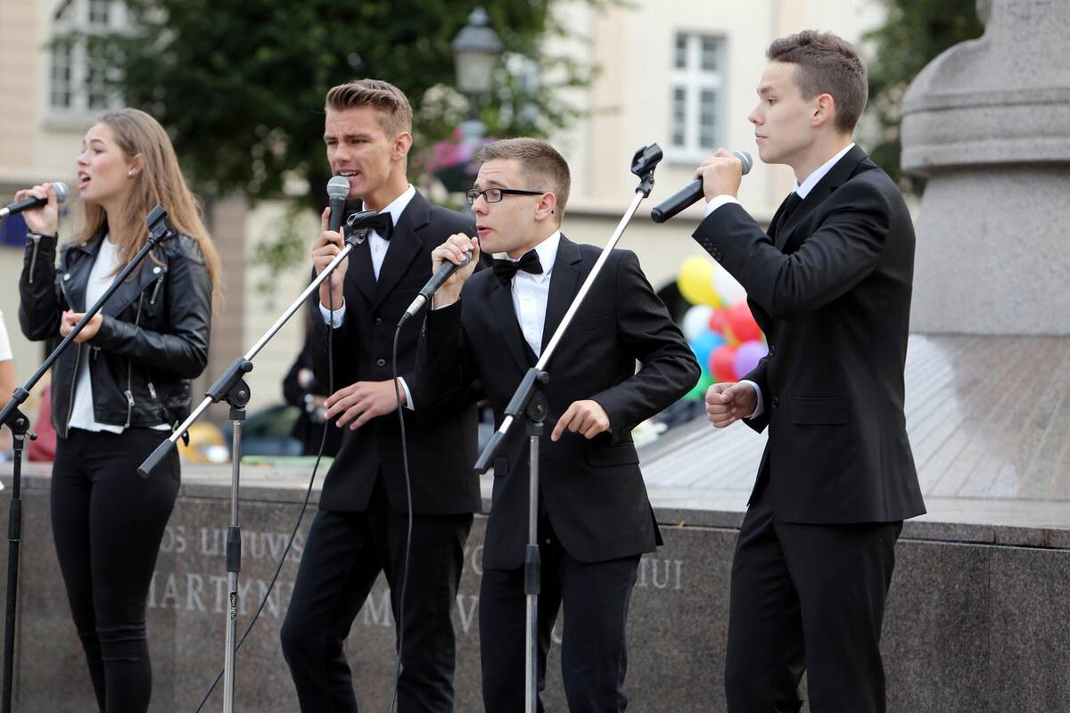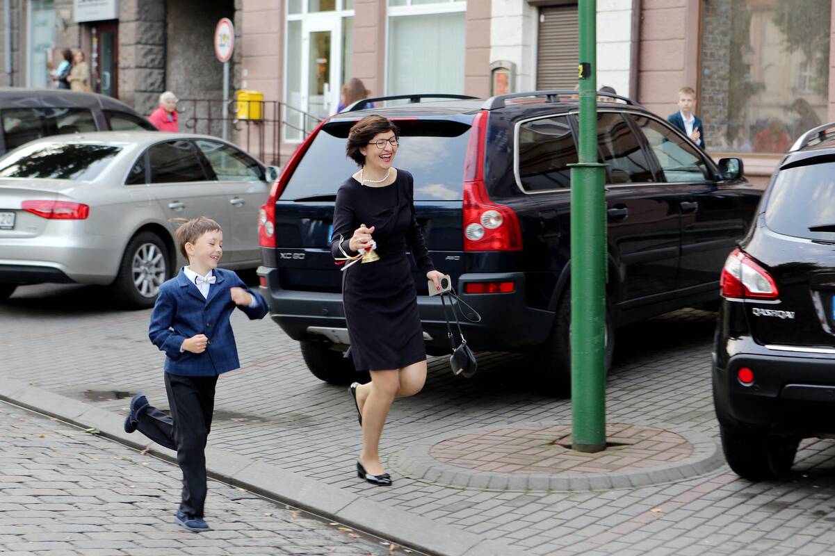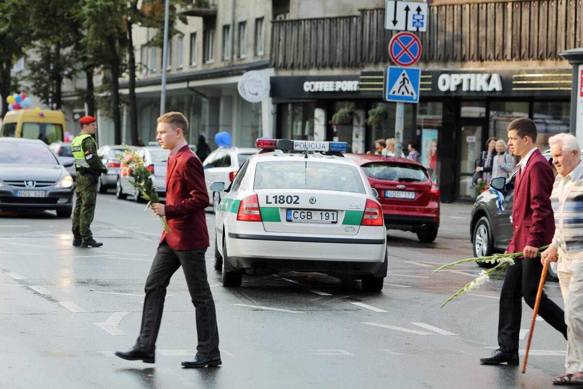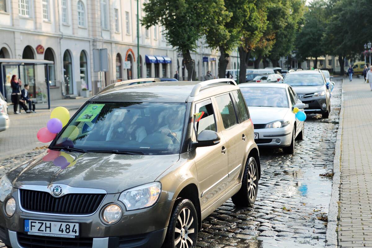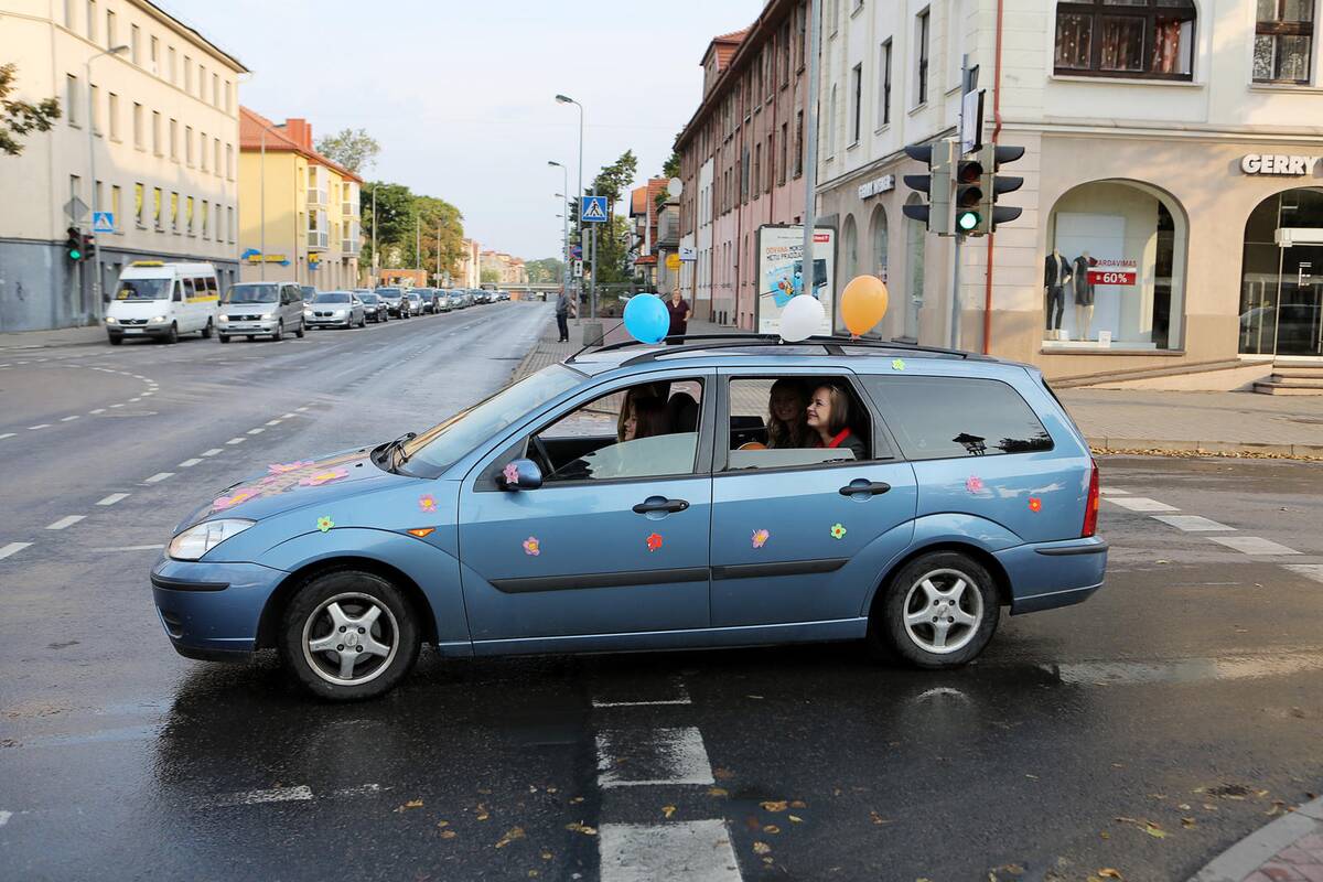 Dar kiek pasiklausę šventinio pirmosios pamokos koncerto moksleiviai susėdo į savo tėvų automobilius ir šventiškai papuoštų transporto priemonių eisena miesto gatvėmis pajudėjo mokyklų link.