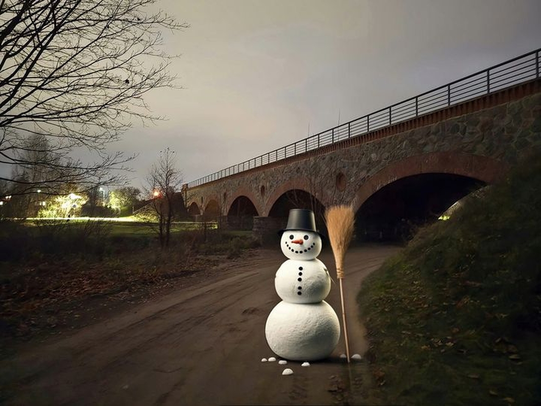 Nuotraukose sniego senį galima išvysti centrinėje Šilutės Lietuvininkų gatvėje, prie tilto per Šyšos upę.
