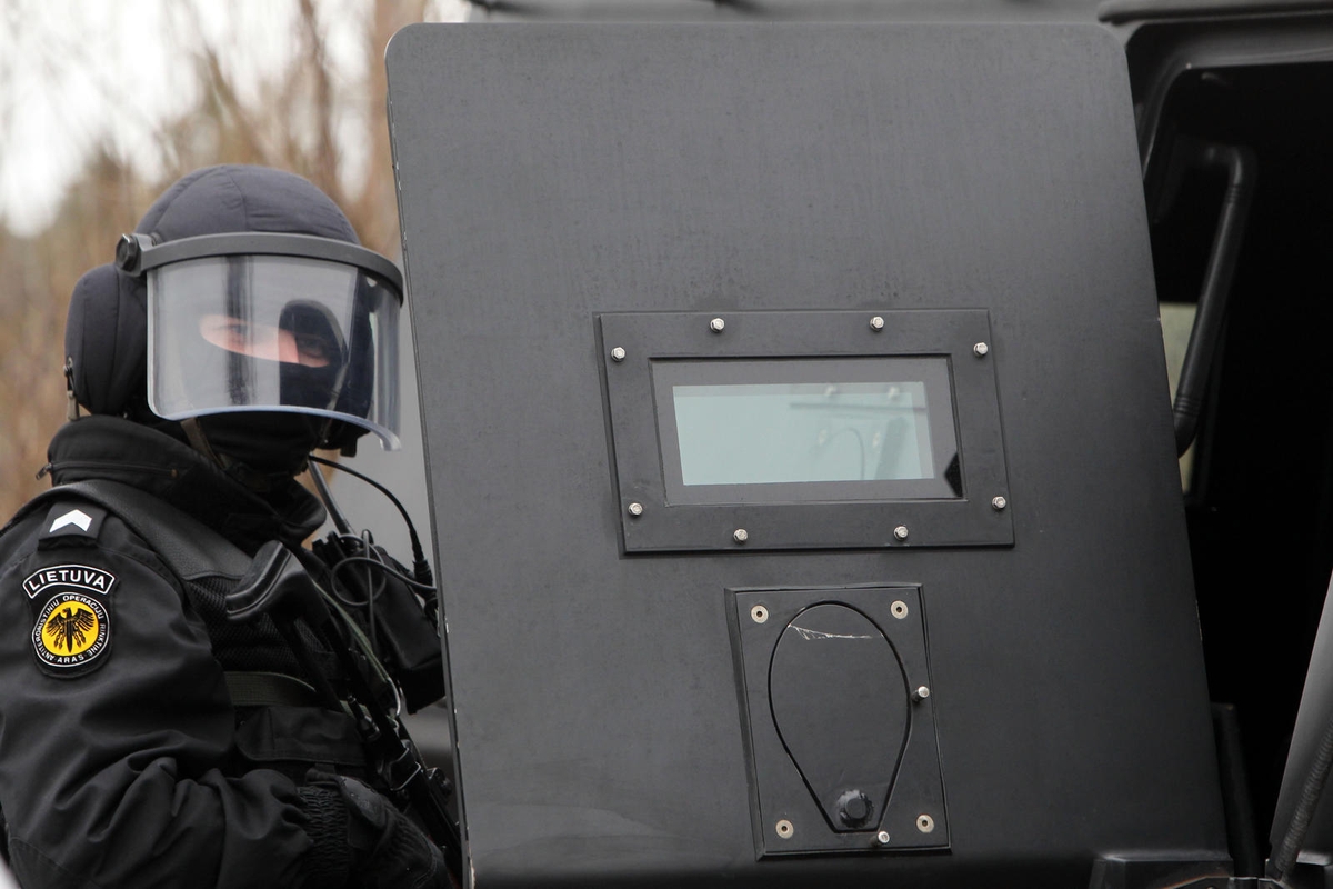 Lietuvos policijos specialiųjų operacijų rinktinės "Aras" kovotojai dirbo drauge su Sprogmenų paieškos ir neutralizavimo skyriaus pareigūnais. Šie atsivežė sprogmenis rasti apmokytą tarnybinį šunį.