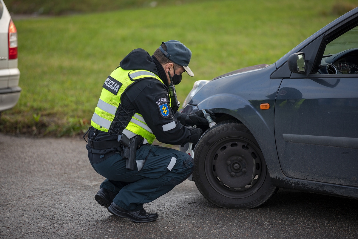 Priemonės metu nustatyti du pažeidimai, kai automobilių padangų protektoriaus rašto gylis neatitiko reikalavimų – vairuotojams panaikinta privalomoji techninė apžiūra ir skirta 15 eurų bauda.