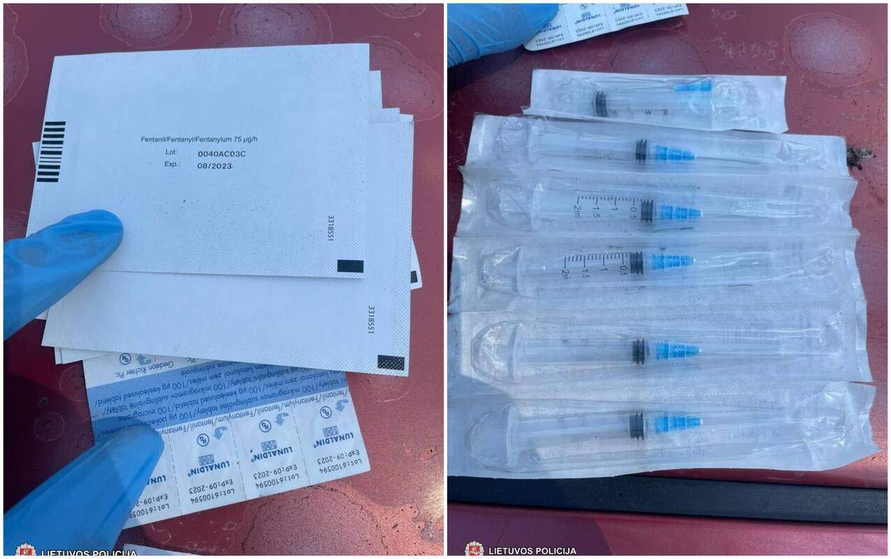 Pareigūnai, atlikdami transporto priemonės apžiūrą, bagažinėje aptiko dešimt receptinių pleistrų, kurių sudėtyje yra galimai labai didelis kiekis narkotinės medžiagos – fentanilio.