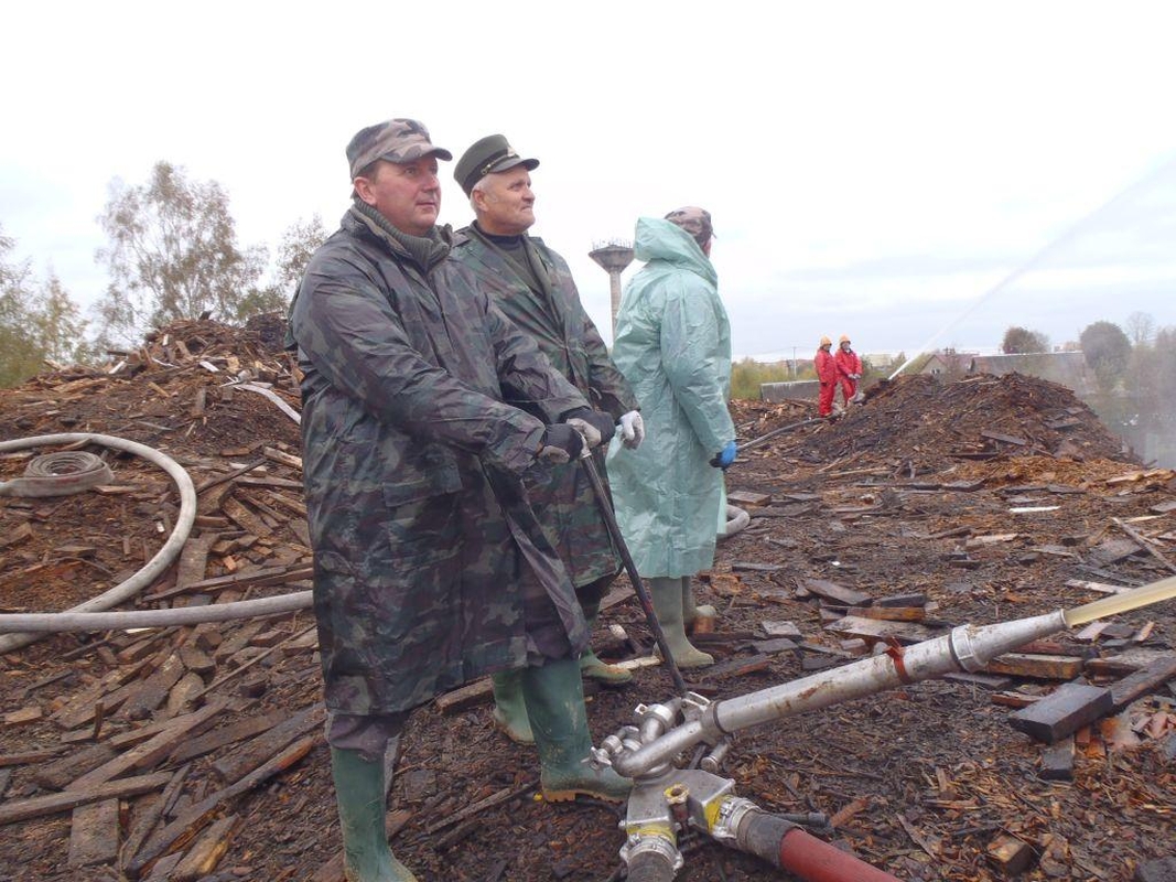 Ugniagesiai teigia, kad gesinimo darbai priklauso nuo kasimo technikos, nes ant krūvos paviršiaus pilamas vanduo didelės įtakos nedaro, tik neleidžia degti atvirai liepsnai. Užgesinama tiek, kiek perkasama. Beje, praėjusią parą pjuvenų kalno viršuje atsivėrė ertmės, vadinamieji „krateriai“, kurie, ugniagesių manymu, siekia aikštelės dangą. Iš jų intensyviai kyla dūmai, rūksta tarsi iš kamino.