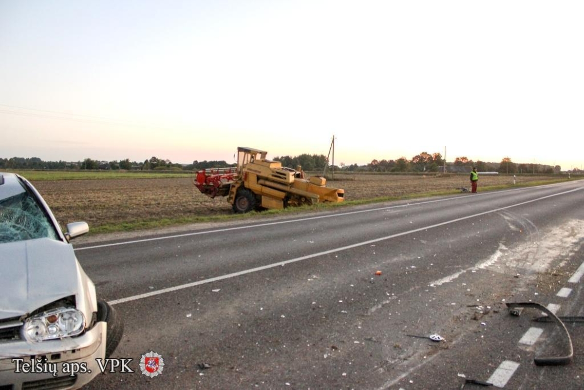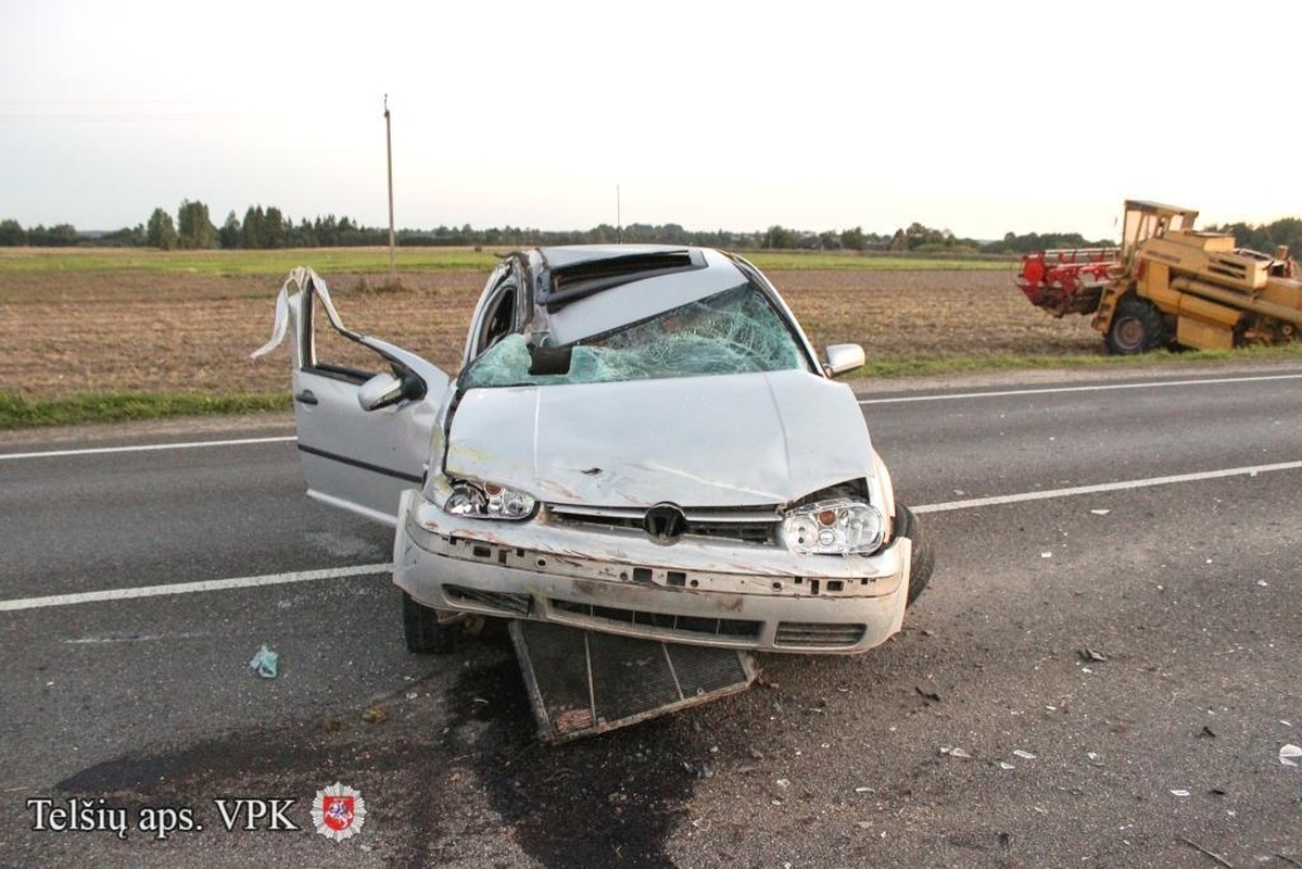 Telšių rajone, kelio Šiauliai-Palanga 55-ajame kilometre, automobilio „VW Golf“ vairuotojas, nepasirinkęs saugaus greičio, atsitrenkė į ta pačia kryptimi važiavusį kombainą „New Holland 1550“.