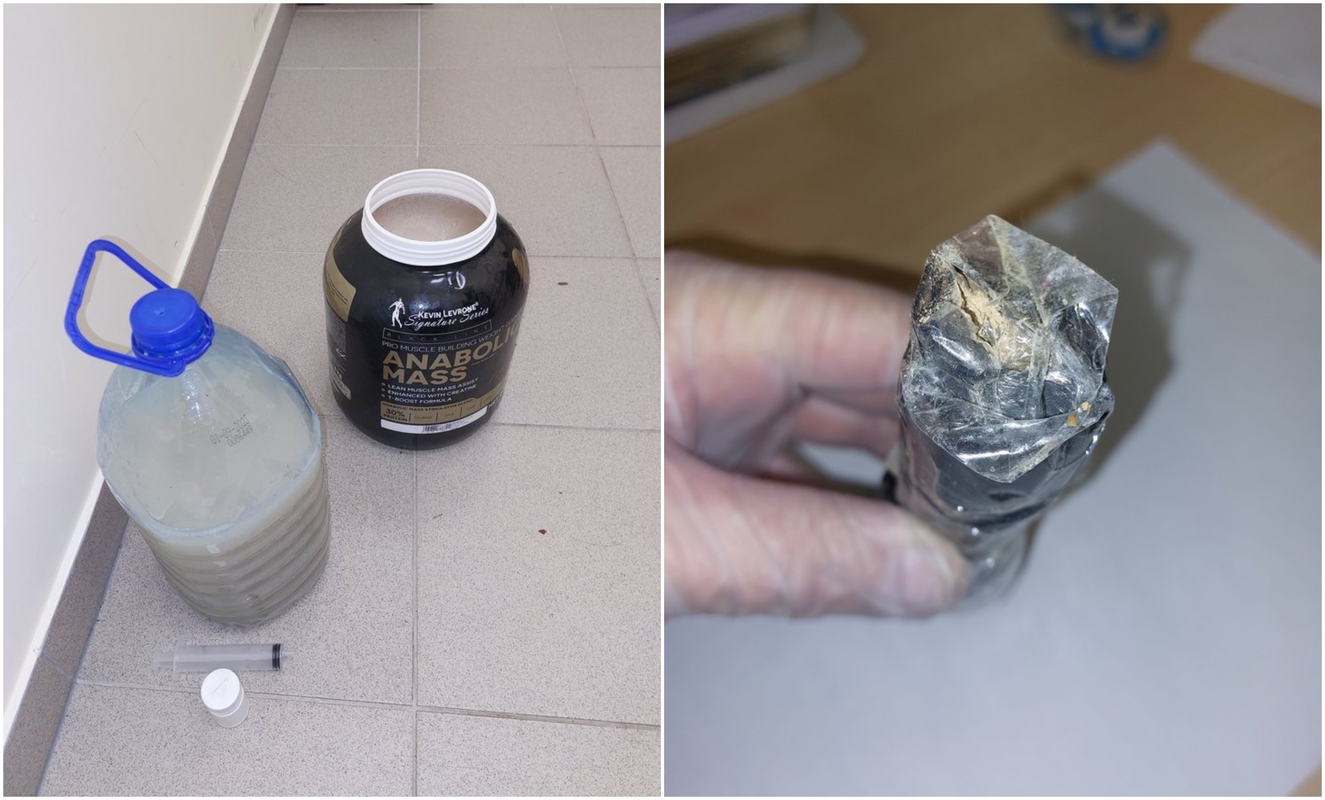 Pareigūnai nurodo, jog iš patalpų buvo paimtas paslėptas paketas su neaiškios kilmės biria medžiaga ir buteliukas su baltos spalvos tabletėmis. Anot departamento, įtariama, kad surastame pakete esanti medžiaga ir tabletės yra narkotinės ar psichotropinės medžiagos.