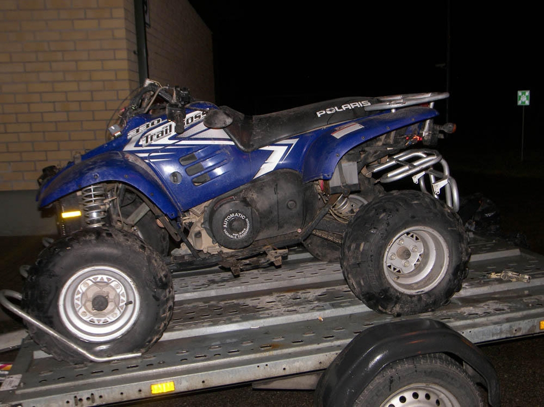 Abiejų užsieniečių, automobilio „Peugeot 406“ ir prie jo prikabintos priekabos dokumentai buvo nepriekaištingi. Druskininkų pasieniečius sudomino ant priekabos gabentas keturratis motociklas „Polaris Trail Boss 330“. Netrukus paaiškėjo, kad 2004-aisiais pagaminta transporto priemonė nuo praėjusių metų gruodžio pradžios kaip vogta yra ieškoma Panevėžio apskrities policijos pareigūnų.