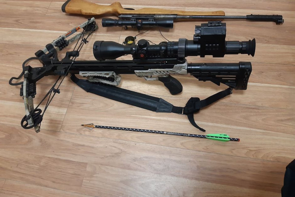 Joniškio rajone esančiame Žmirklių kaime sulaikytas vyras, kuriam pareikšti įtarimai dėl neteisėto disponavimo ginklais, pareigūnai rado arbaletą, šautuvą, įvairių šovinių ir strėlių.