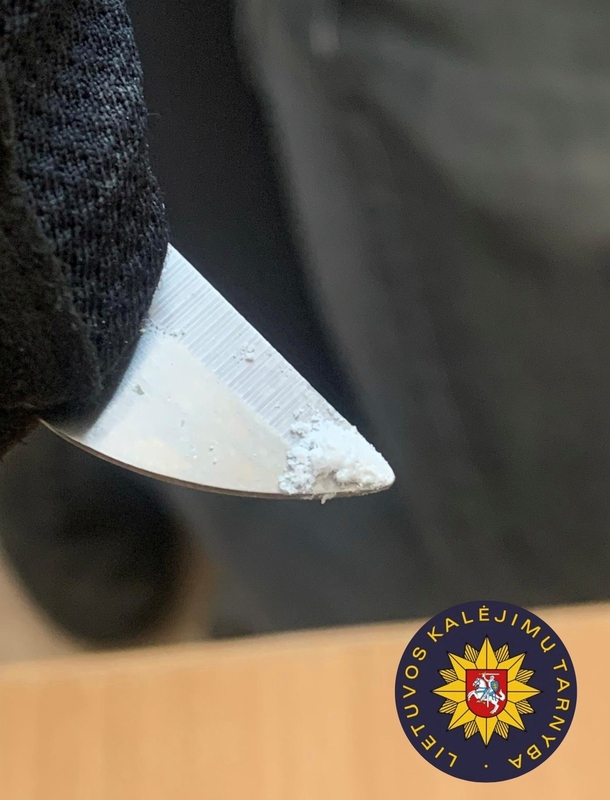 Pasak Kalėjimų tarnybos, ji perdavė juodos spalvos polietileninį maišelį, kuriame buvo šeši į prezervatyvus supakuoti apie 343 gramų svorio paketai su balkšvos spalvos biria medžiaga. Įtariama, kad tai – psichotropinė medžiaga „kristalas“.
