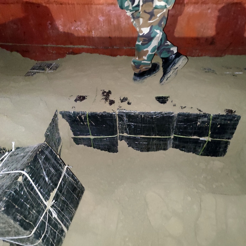 Netrukus, po negiliu kalkių sluoksniu, aptikti ir juodo plastiko ryšuliai su cigarečių dėžėmis. Iš viso rastos 58 dėžės (29 tūkst. pakelių)  baltarusiškų cigarečių  „Minsk Capital QS“, kurių vertė su privalomais sumokėti mokesčiais – 103 820 eurų.