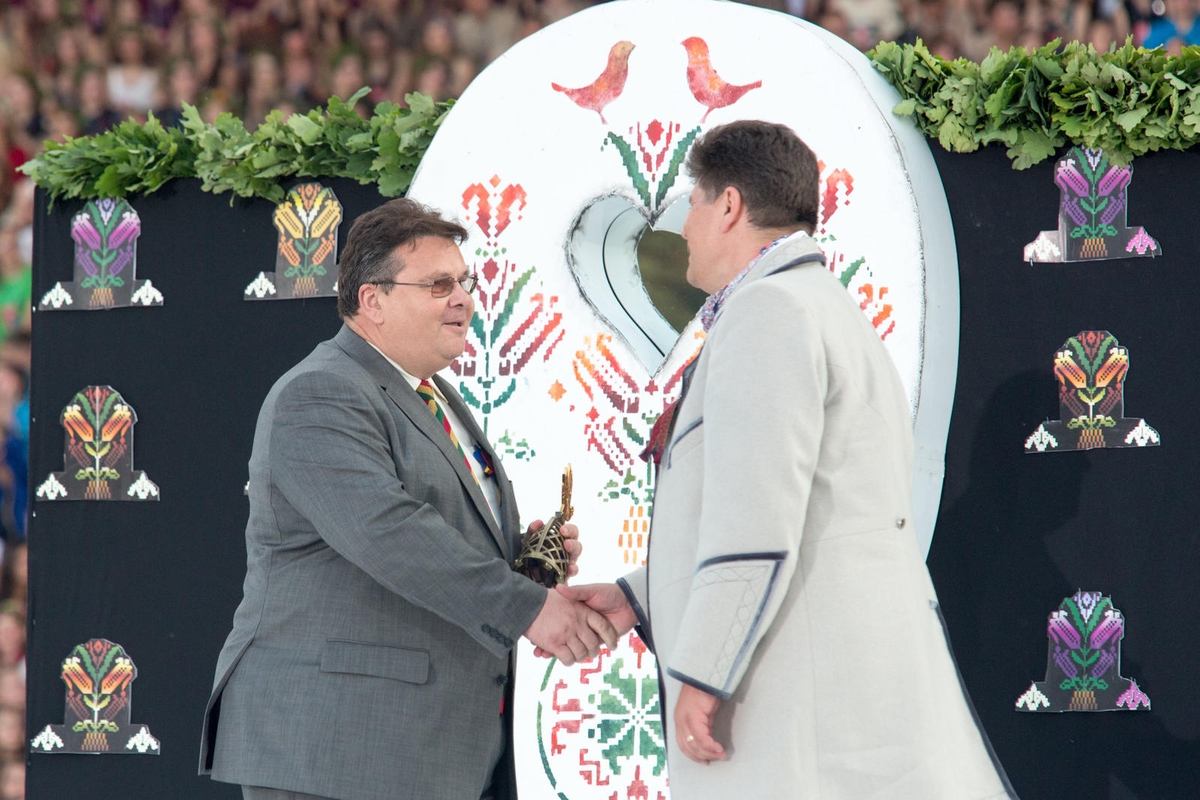 „Dėkoju visos išeivijos vardu, kurią jūs taip maloniai priimate į Dainų šventę ir dėkojame mes visi Lietuvai, kad ji atsirado visų mūsų širdyse, kad įsižiebė ir kad leido mums ją mylėti“, - sakė D.Polikaitis.