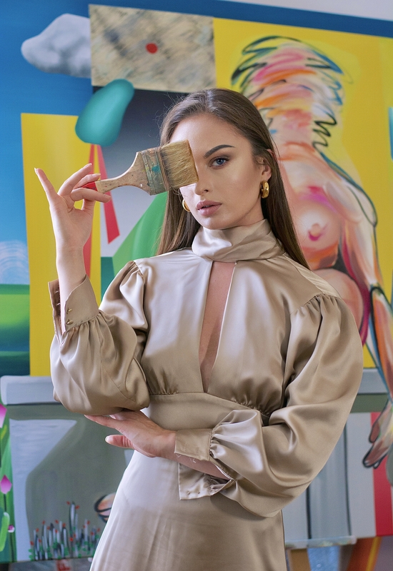Žmonės socialiniuose tinkluose ieško žmonių – ne produktų. Kai pirkėjas žiūri į šalia paveikslo stovintį žmogų, atsiranda glaudesnis ryšys, užsimezga vidinis pokalbis. Mačiau statistiką, kiek dėmesio sulaukia nuotrauka vieno paveikslo, o kiek – kartu su manimi.