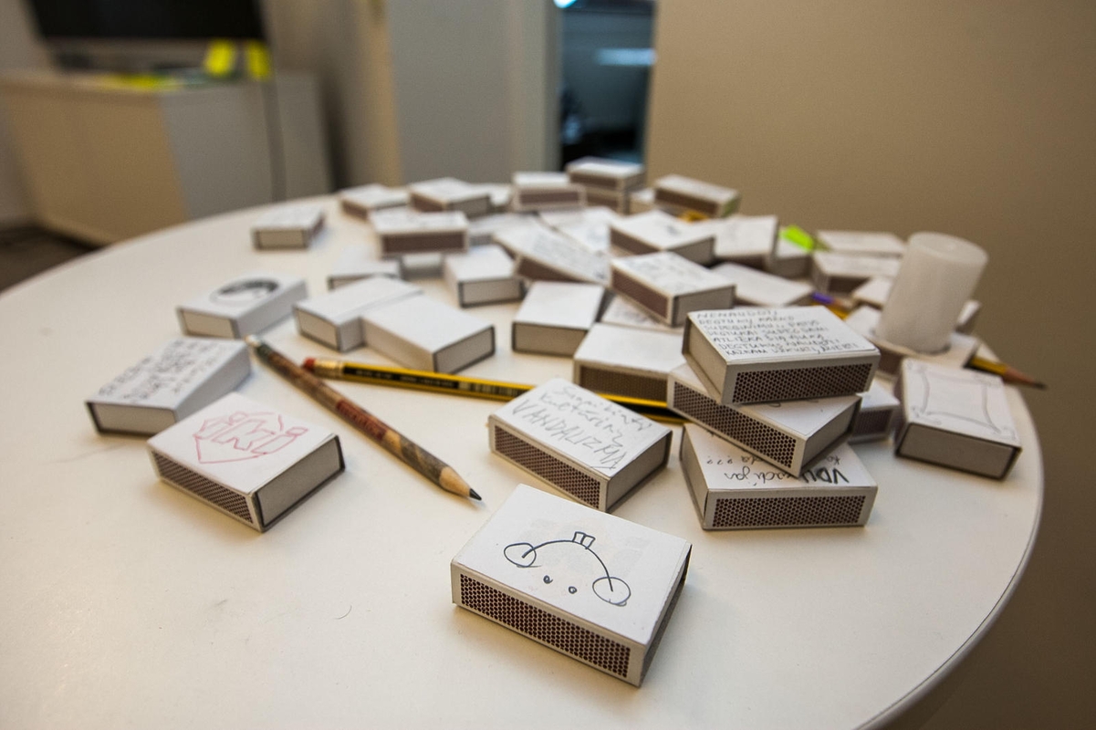Šioje parodoje kūrinių liesti negalima, bet kiekvienas gali čiupti vaiskiai geltoną lipnų lapelį ir užrašęs jame savo mintis, kilusias apsilankius parodoje, prilipinti jį tiesiai ant galerijos sienų. Rezultatas labai linksmas – galerijos erdvė sumirga ryškiaspalviais popieriniais "paukščiais". Kiekvienas jų plasnoja anoniminių autorių mintimis. Tad prie parodos papildymo, rankas pridėti ir savo žymę palikti, gali kiekvienas žiūrovas.