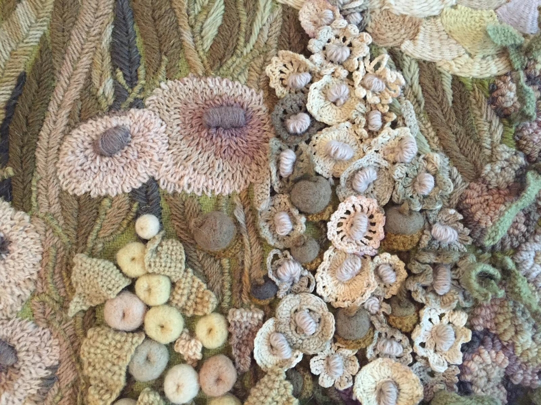 Gamtos pastelės spalvos ir atspalviai išsilieja ant taip pat natūraliu būdu dažytos vilnos, medvilnės skiaučių – paveikslai, pagalvės, rankinės, įvairios detalės, iš kurių, tikiuosi, vėliau gal pavyks sukurti kažką originalaus.