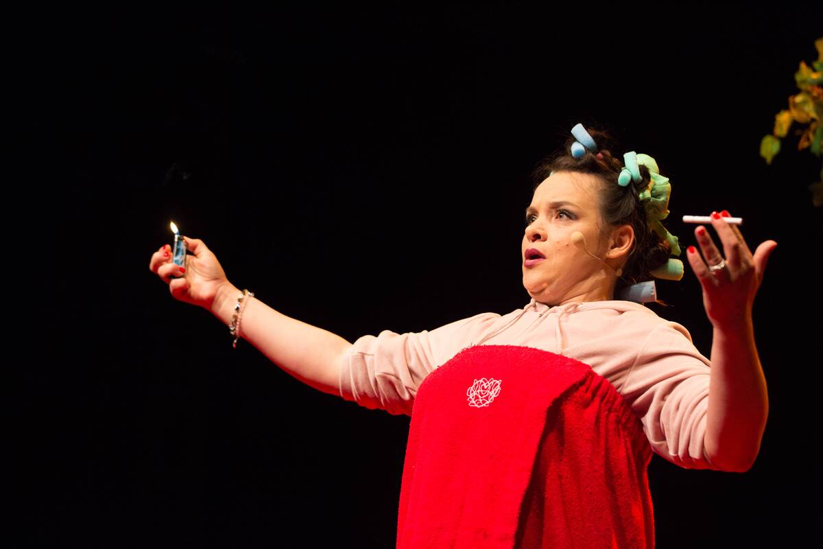 „Laukinę moterį“ šioje mono komedijoje yra įkūnijusios scenos profesionalės, išsiskiriančios ypatingu talentu komedijos žanrui: Rimantė Valiukaitė, Neringa Varnelytė, Rasa Marazaitė. Per 10 metų šis spektaklis parodytas beveik 400 kartų 50-yje Lietuvos miestų – jį matė daugiau negu 150 tūkst. žiūrovų. Profesionalus komedijos teatras „Domino“ šį spektaklį taip pat prodiusavo ir pastatė Estijoje, Latvijoje, Čekijoje, Lenkijoje jis taip pat rodomas iki šiol.