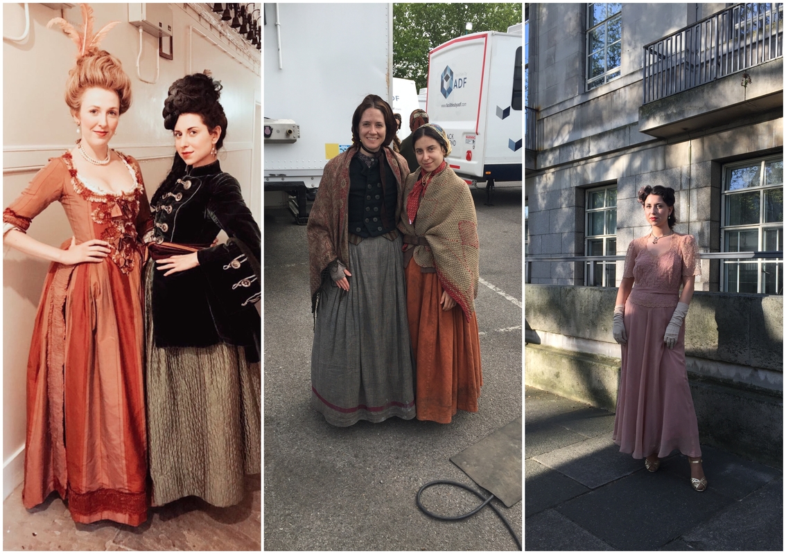 Aikštelėje: Londone Greta filmavosi ne vieno filmo ir serialo masinėse scenose. Serialas „The Great“ („Imperatorė“) 2020 m., serialas „Vanity Fair“ („Tuštybių mugė“) 2018 m., filmas „The Guernsey Literary and Potato Peel Pie Society“ („Gernsio literatūros ir bulvių lupenų pyrago draugija“) 2018 m. / G. Skya asmeninio archyvo nuotr.