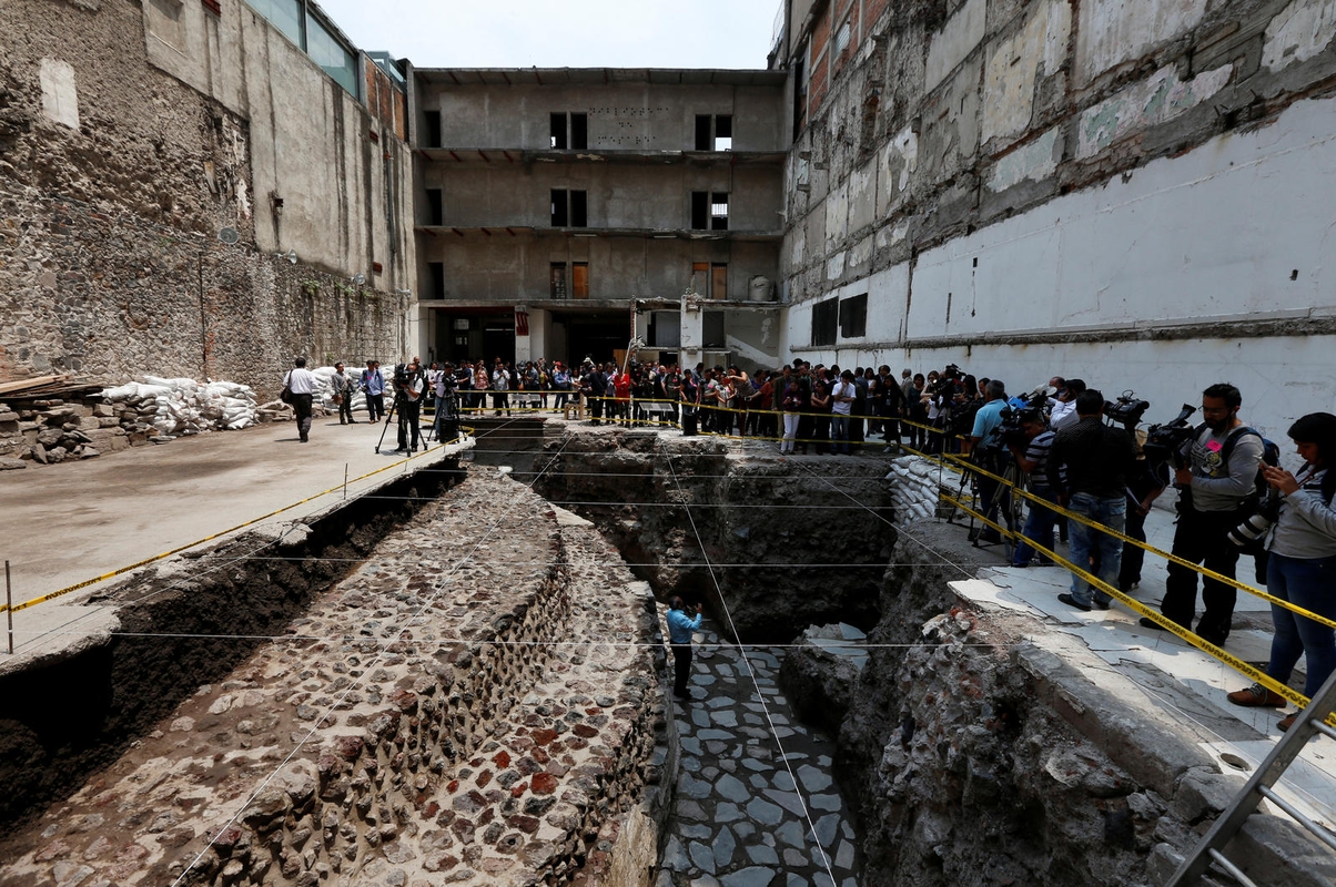Didelio masto kasinėjimus atlikę archeologai trečiadienį pristatė savo radinius ir aprodė žurnalistams pusapvalę Ejekatlio-Kecalkoatlio šventyklą bei netoliese esančią aikštę.