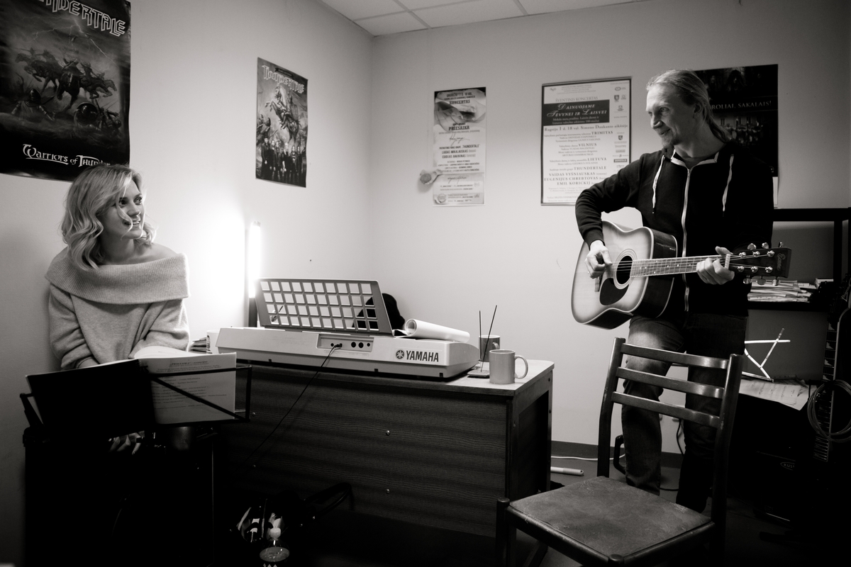 „Kaip tik baigiau režisūros kursus „Meninės fotografijos režisavimas“. Studijavome tuos kūrybos principus, kuriuos dabar galiu išbandyti praktikoje! Tai – neįkainojama patirtis! Su džiaugsmu priėmiau prodiuserio V. Andriuškevičiaus pasiūlytą idėją kurti roko operos „Priesaika“ foto reportažų ciklą „Operos gimimas“, – sako fotografė Eglė Ščerbinskaitė – Elion.