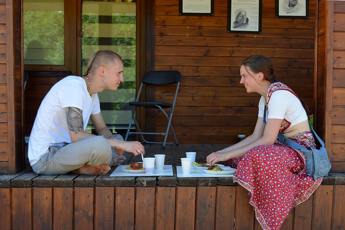 V.P.: Pagrindas yra ritualas – jagja. Giedamos įvairios mantros, sukuriamas toks aukuras, į kurį dedamos malkos, lydytas sviestas, įvairūs grūdai metami į ugnį. Vestuvių metu buvo atvykęs mūsų dvasinis mokytojas iš Amerikos. Buvo skaitoma paskaita. Buvo per šimtą svečių. Teko susirasti atitinkamo dydžio patalpą, pasirūpinti, kad visiems būtų vaišių. Sutuoktuvės buvo švenčiamos, galima sakyti, indišku-vakarietišku stiliumi, paprastai ir kukliai.