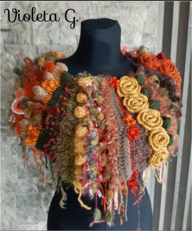 Paklausta, kada pradėjo nerti, Violeta aiškina, kad nėrimas jai – tik viena rankdarbių pusė, ir kviečia užsukti į feisbuko puslapį, kuriame rodo visą savo darbų paletę – nuo virbalais megztų pončų iki tekstilinių segių ir vąšeliu nertų riešinių. „Esu tautodailininkė. Daugelis mano darbų atlikti mišria technika – ir vąšeliu, ir virbalais“, – pasakoja ji ir neslepia, kad šiame kelyje yra savamokslė.