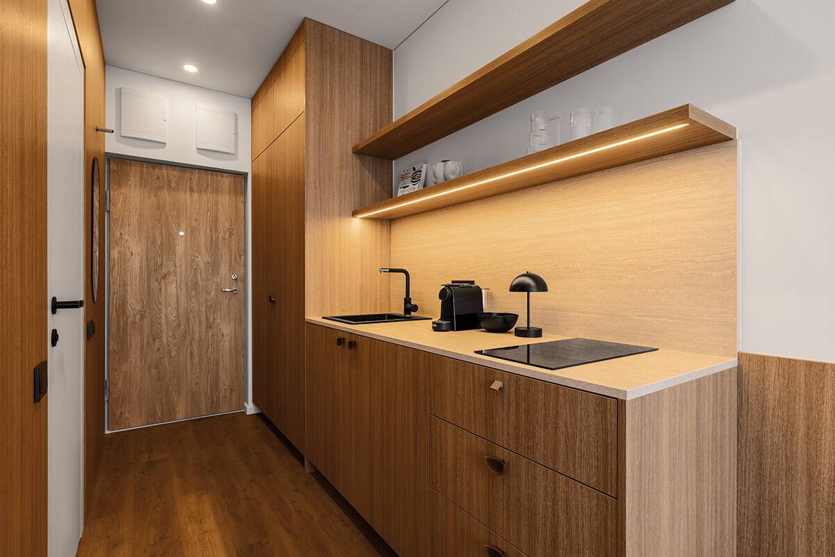Viešbučiuose medžiagos parenkamos reaguojant į naudojimo intensyvumą: jos turi tarnauti ilgai, būti paprastai valomos ir išlaikyti estetiką po tūkstančių kontaktų. Ši logika sąmoningai perkelta į „Nemuno by CITUS“ interjerus: praktiški audiniai, lengvai valoma kiliminė danga, aliumininės grindjuostės ten, kur judėjimas didžiausias.