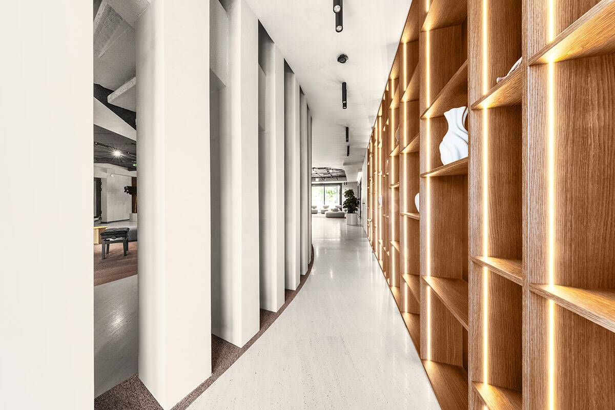 - Atviras lubas, kur matosi konstrukcijos, inžineriniai mazgai, kompensuokite akustiką akustinėmis salomis, tekstile;